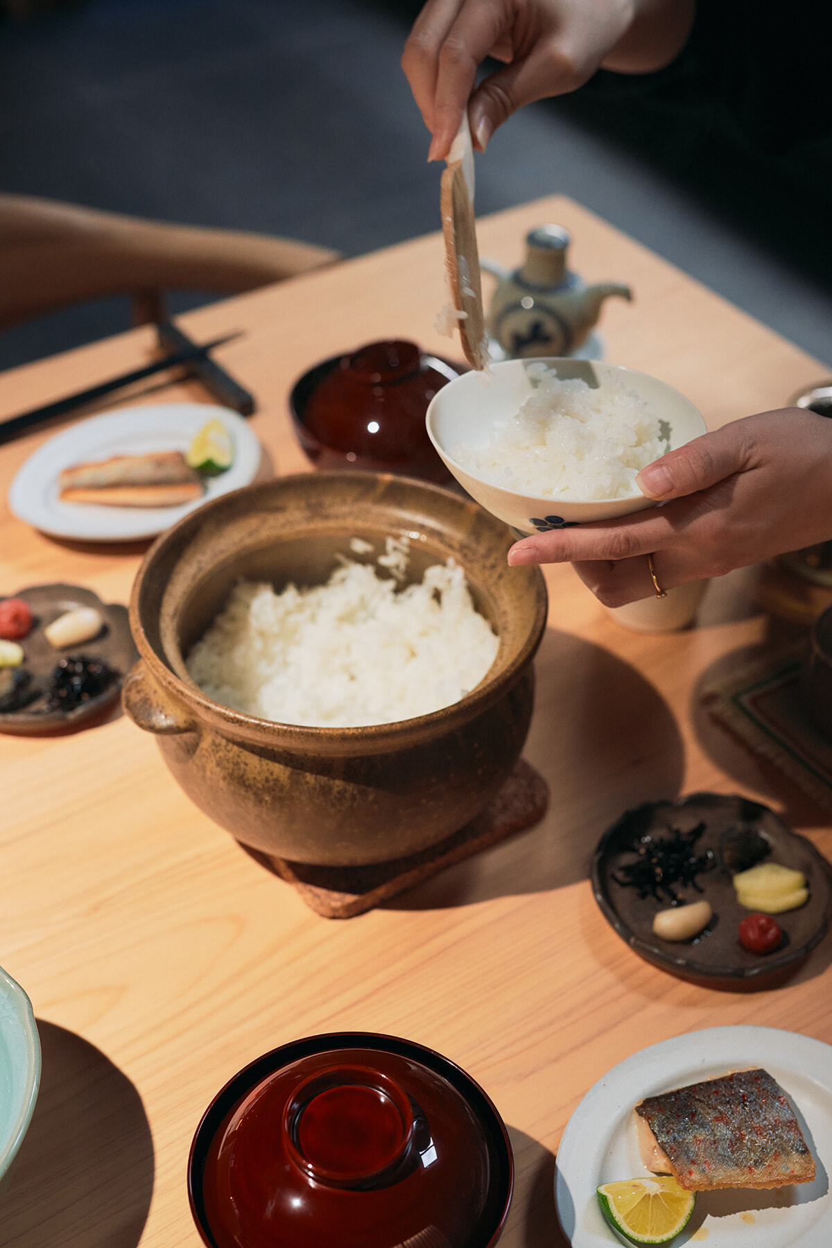 インテリアからうつわまで、美しさが細部まで宿る空間にたちまち香ばしい香りが広がる。ステイなしで食事だけの利用も可能。