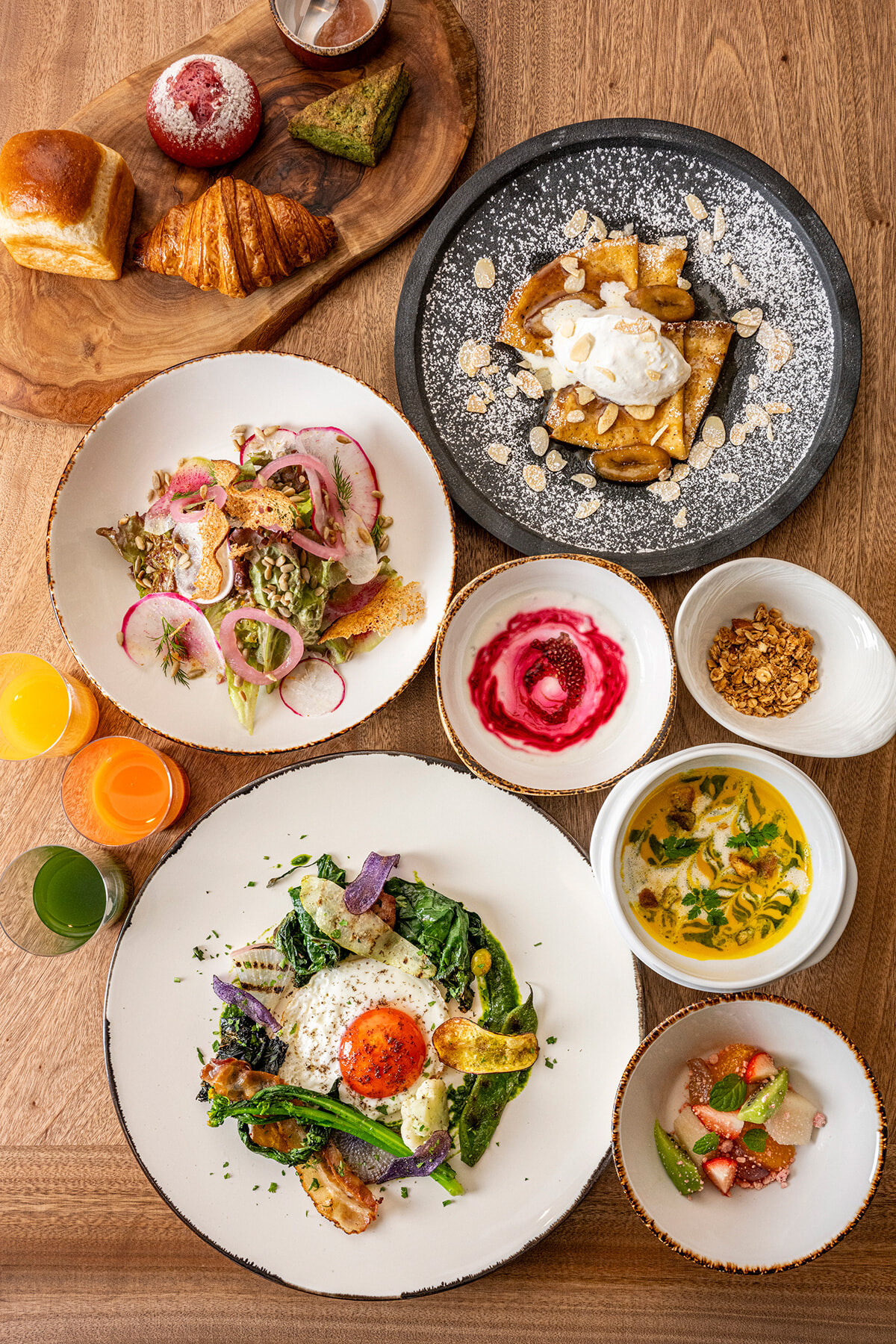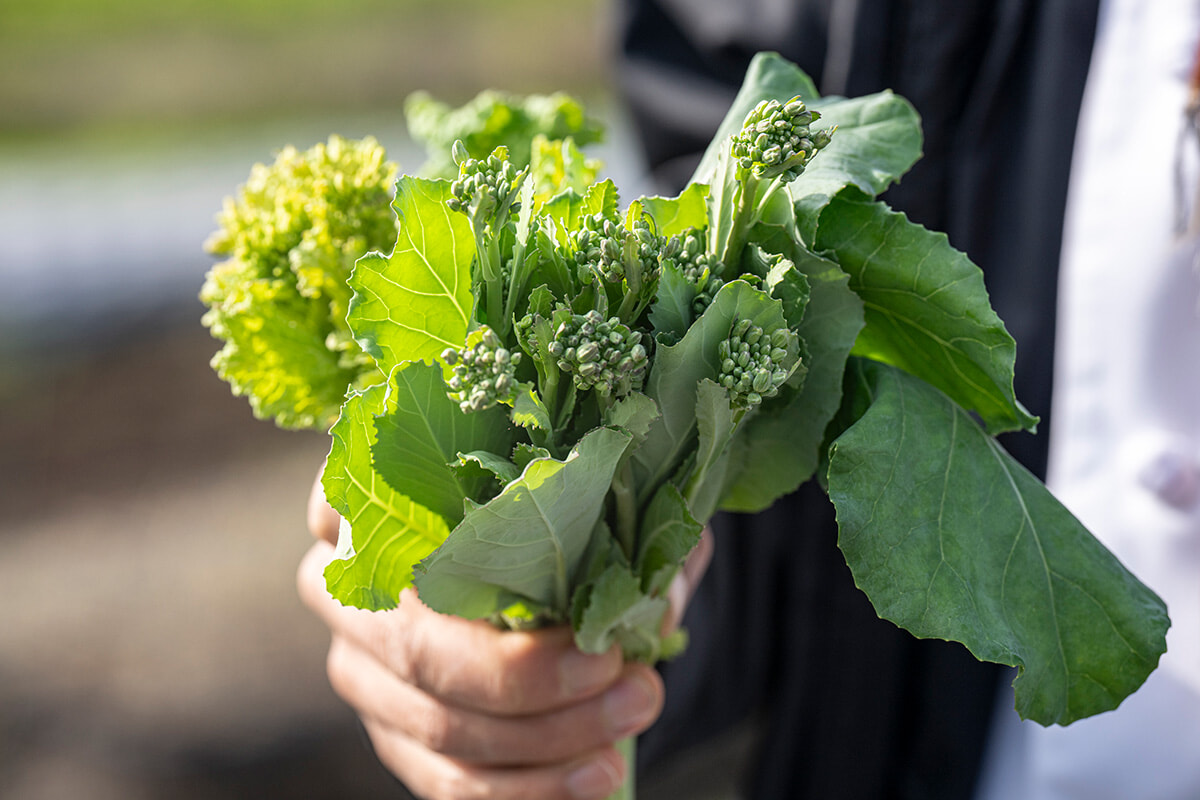 食を通してリトリートが叶うのもここならでは。「Farm To Table」の先をいく「Farm Driven」をコンセプトに掲げているように、地元食材を取り入れるだけでなく、”多品目少量栽培”をベースに年間40品目350品種以上の野菜やハーブを栽培する自社ファームを管理し、その日採れたものに合わせた調理を大切にしている。