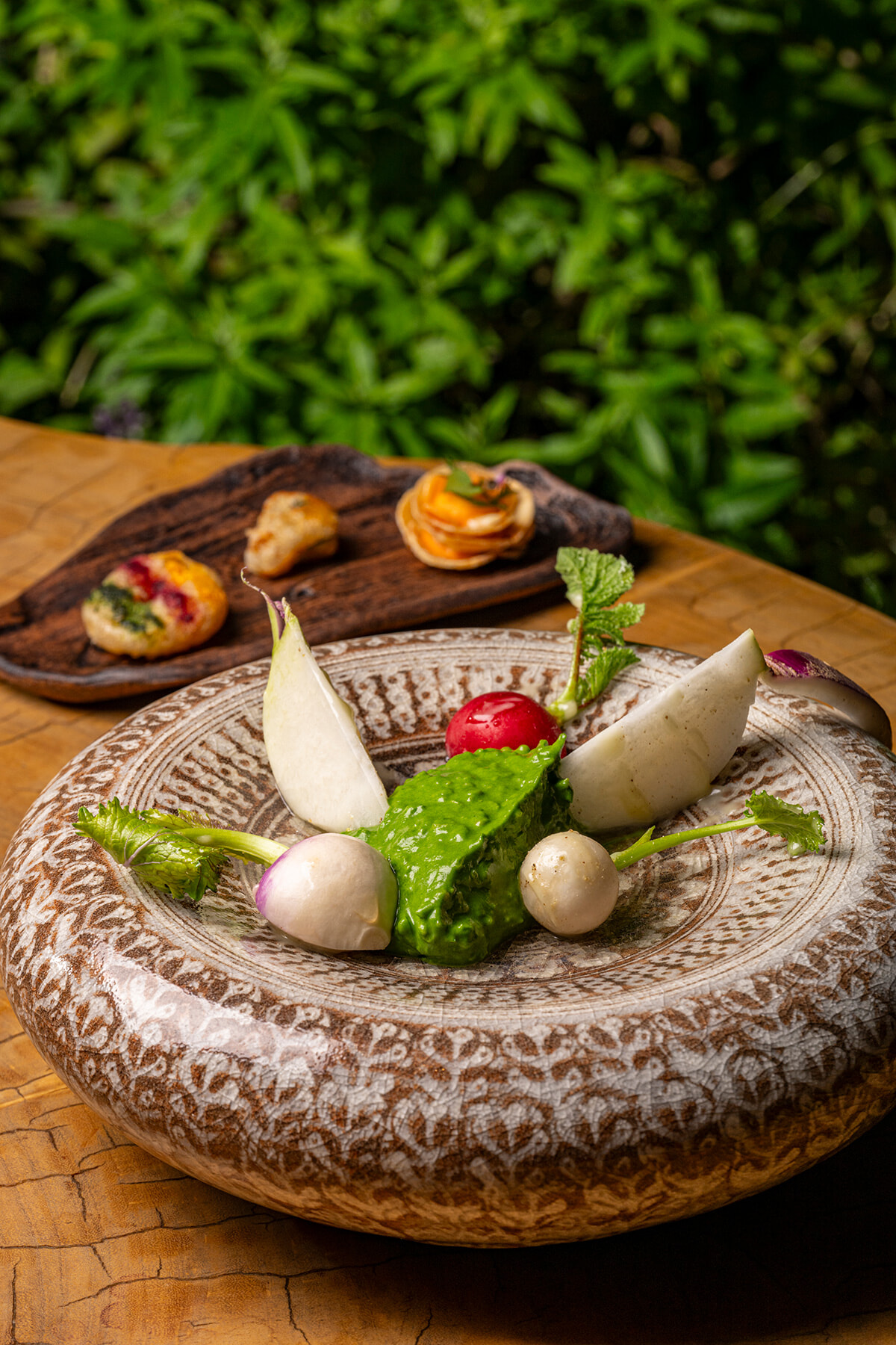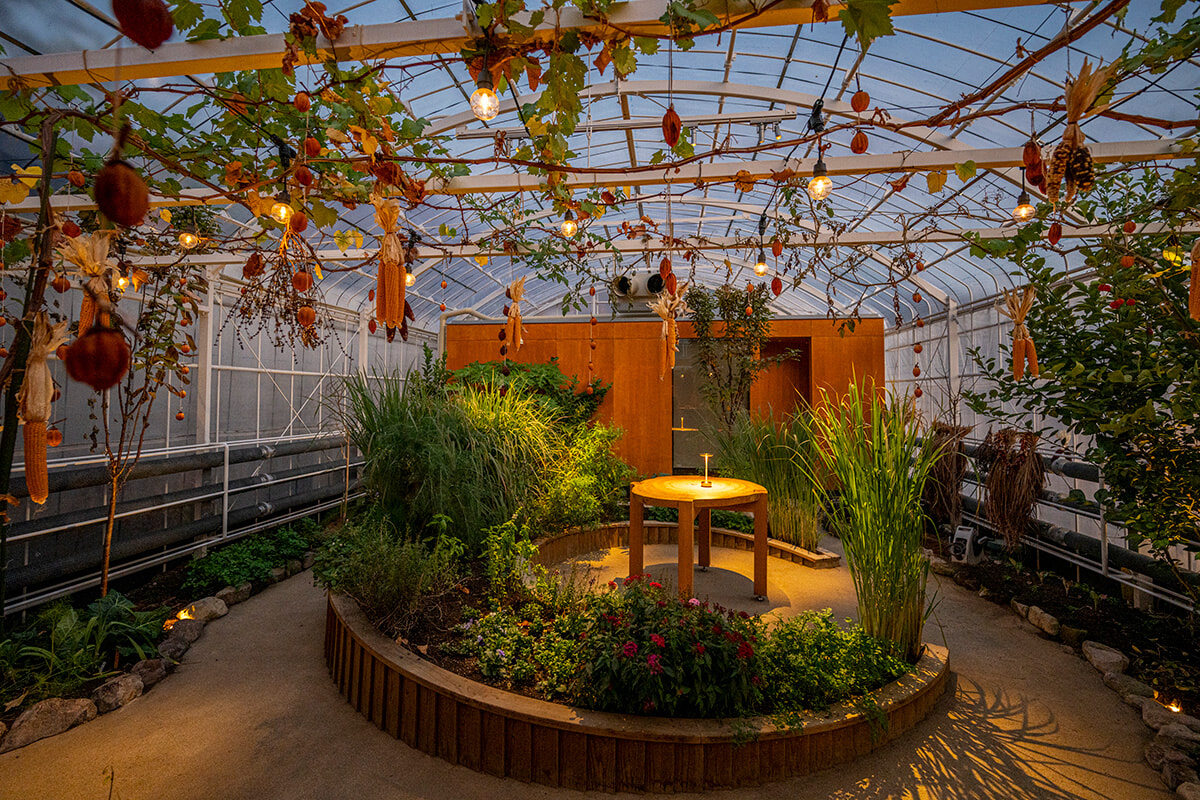 食にまつわること全般を仕切るのは、ニューヨークの農場一体型のレストラン、ブルー・ヒル・アット・ストーンパーンズの副料理長を務めていたタシ・ジャムツォ。「ライブ感を楽しんでほしい」と、ディナーコースの前菜はレストラン横の小さなインドアガーデンからスタート。提供された料理をただ食べるだけでなく、食材が育まれる姿も五感で楽しめる。料理は野菜が主役とはいえ、侮れない。”素朴”とは縁遠い、身体の内側からエネルギーが満ちていくようなパワフルで色彩豊かな料理に心動かされること間違いない。