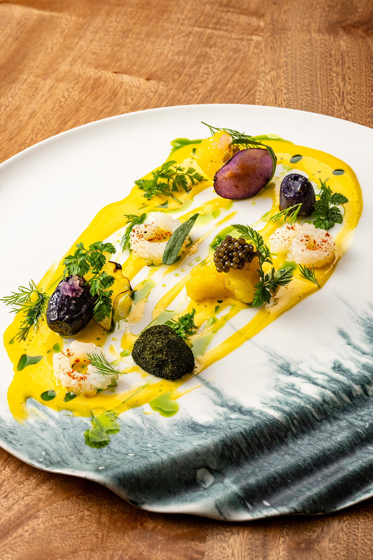 3種のジャガイモをサフランのサワークリームで味わう「ポテト」