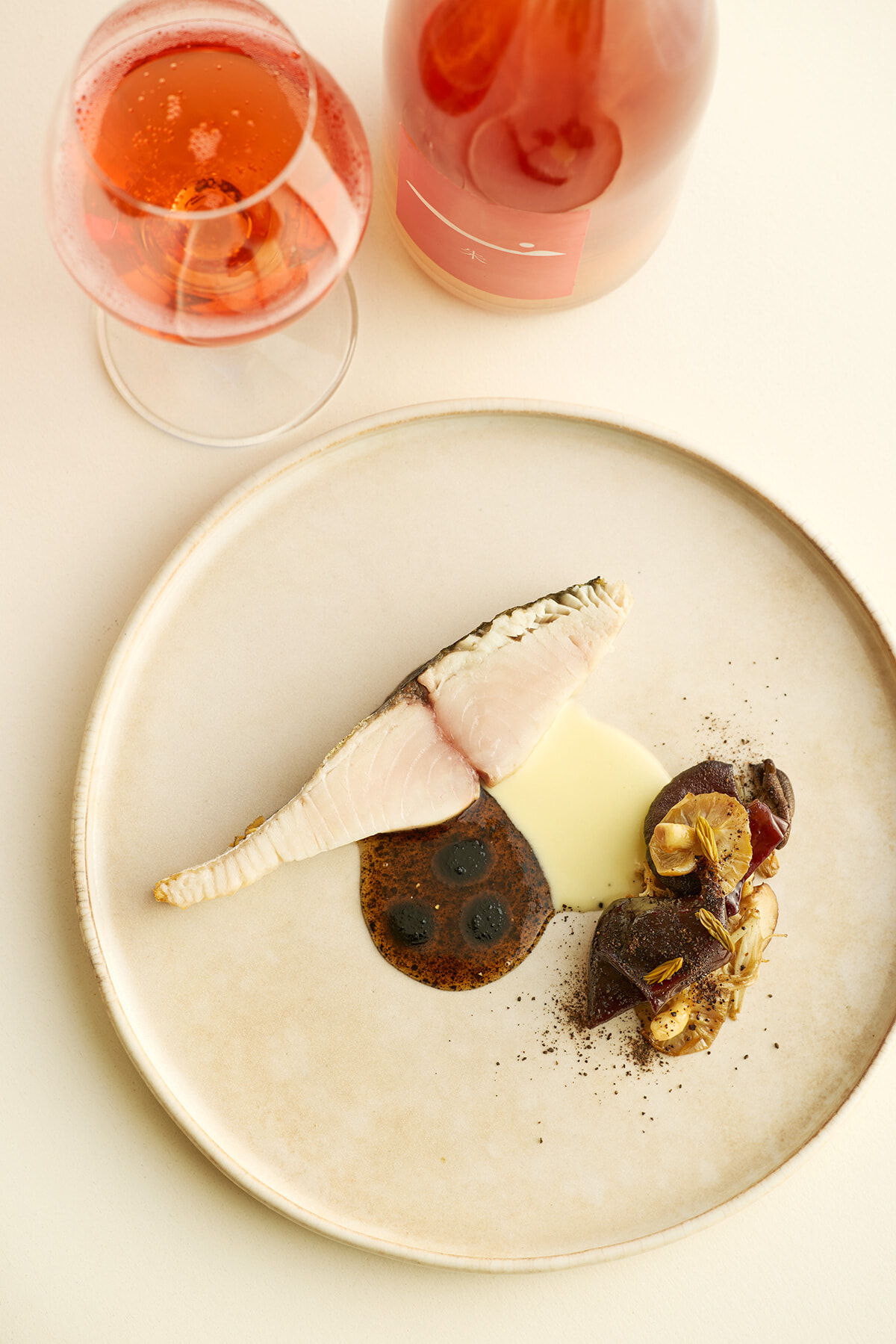 いくつかの温度帯を用いて、水分を失わないよう火入れした鰆はジューシー。ソースに使う香茸もチーズも、地元の生産者を訪ねて入手。