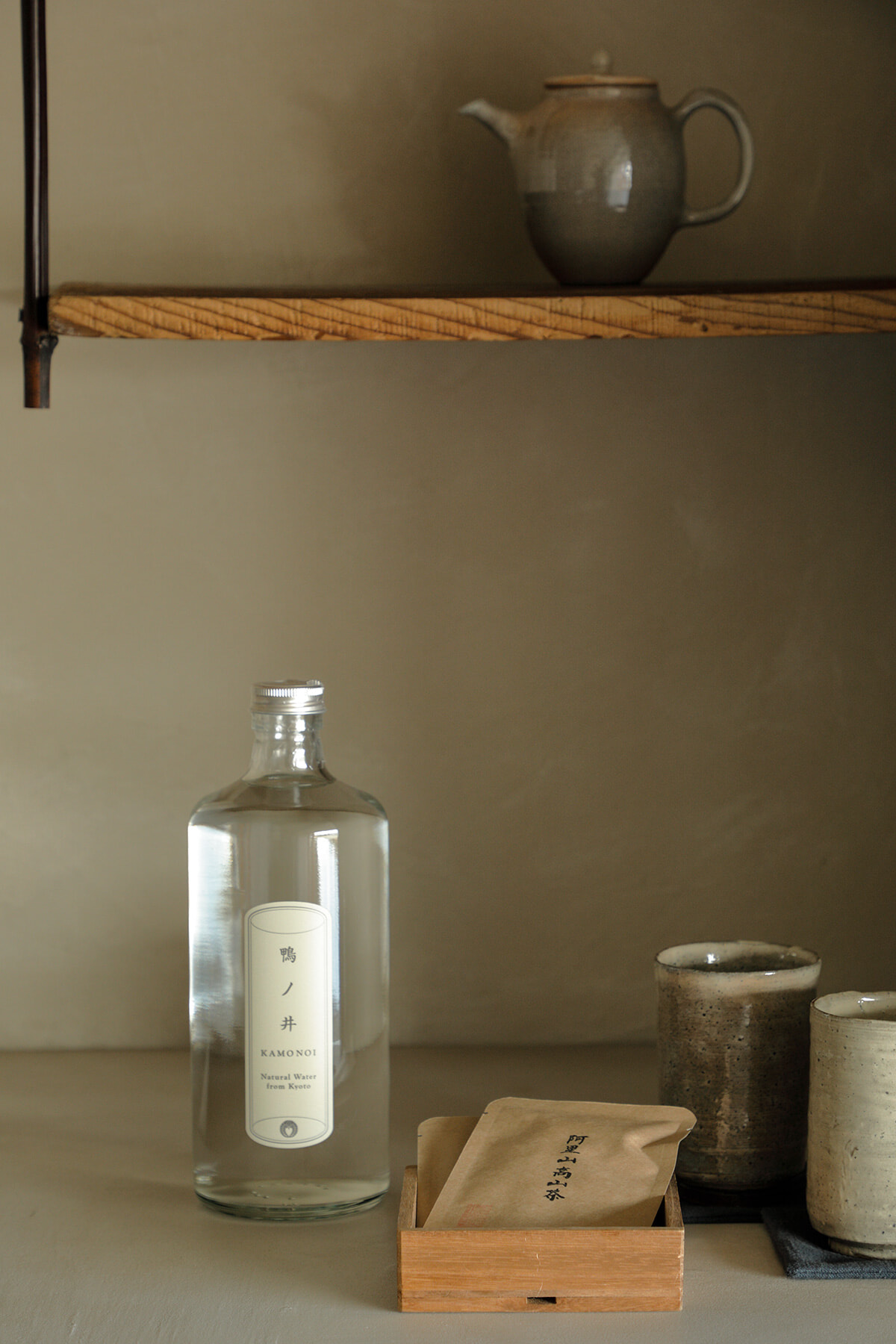 客室には鴨半の深井戸より汲み上げられたミネラルウォーターと池半オリジナルのお茶を季節替わりで用意。ミニキッチンやランドリーもある。