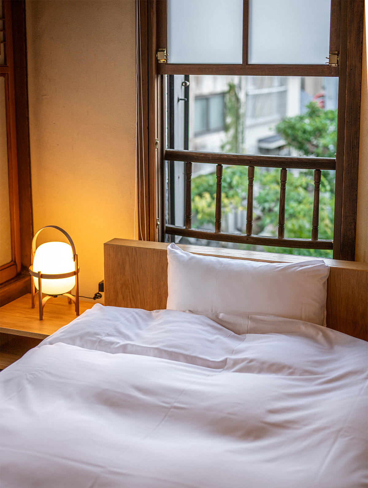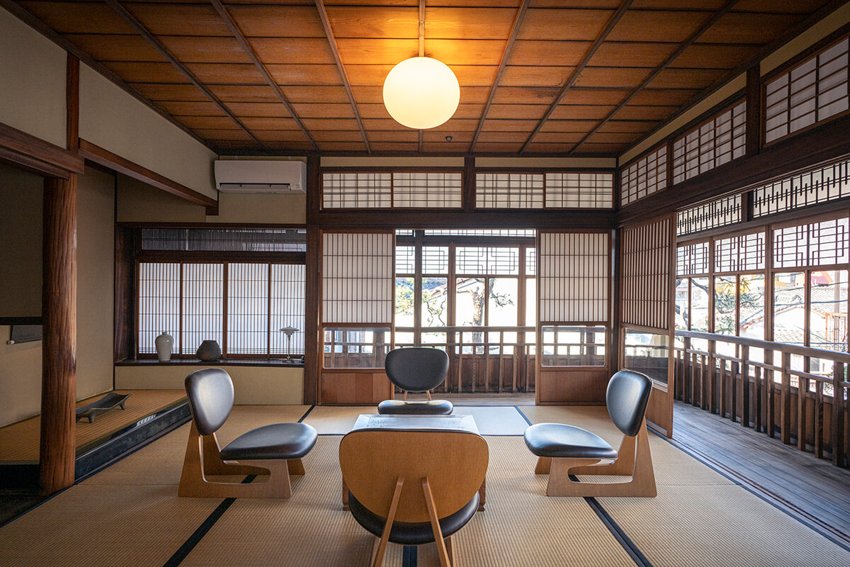 客室は全部で3部屋。中華料亭時代に宴会場とされていた主屋、従業員の控室であった離れ、家財が保管されていた蔵だ。ビイドロガラスのはまった幾何学模様の窓や梁、床板などほとんどが当時のまま。長い歴史のある日本家屋に自然になじむようにと、デザインに普遍性のある北欧家具を置き、日本と中国と西洋の文化が入り混じる長崎ならではの”和華蘭文化”が表現されている。最新設備で利便性ばかりを追求したホテルとは違う、古きよき建物こその味わいと、誰もがほっと心落ち着く懐かしさがここにはあるのだ。