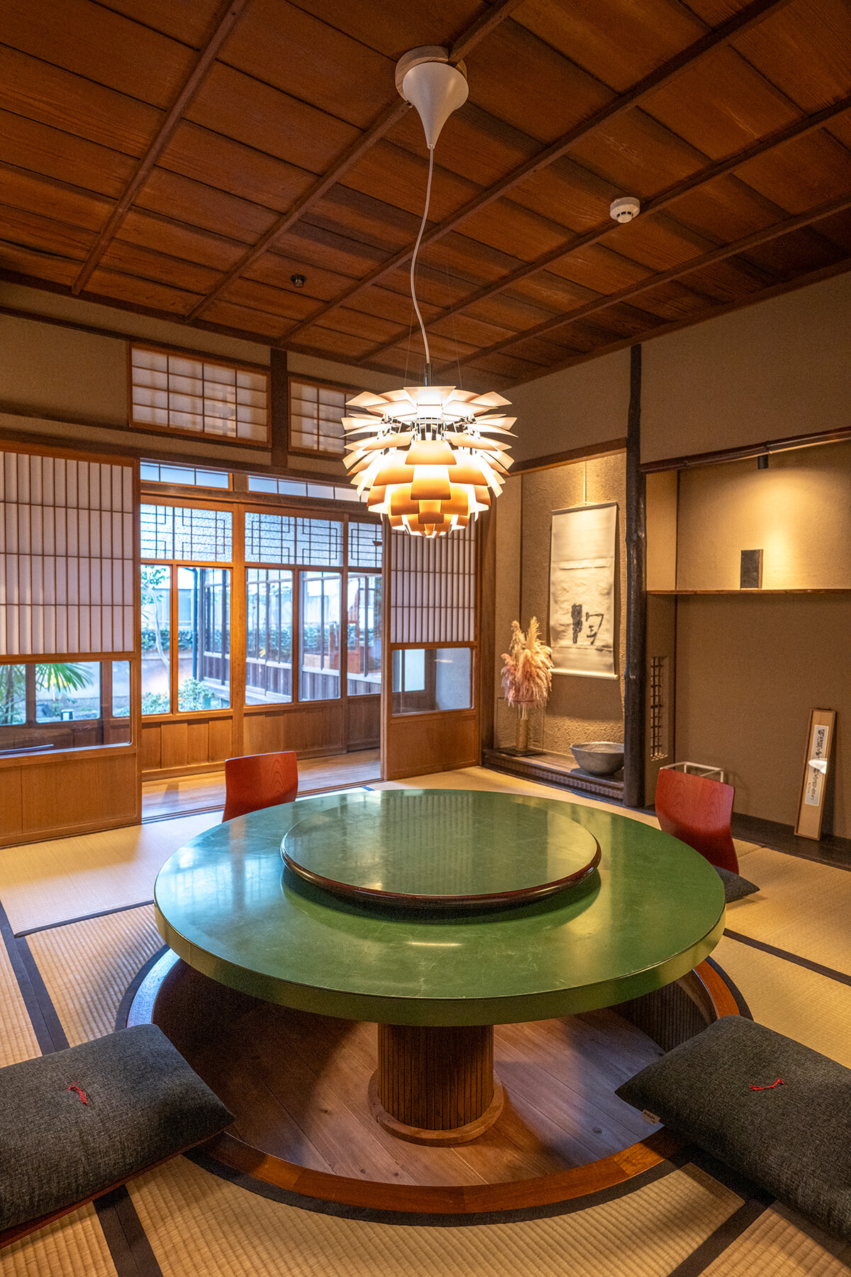 予約制の個室には中華料亭時代に使われていた緑の円卓が。