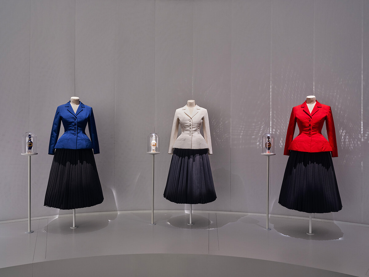 館内ではロダンの彫刻、ブルー、ホワイト、レッドの3色のバリエーションで展開されるディオールのエレガンスを象徴するタイムレスな「バー」スーツ、そして1949年にクリスチャン・ディオールがデザインし、パリ2024オリンピック・パラリンピックのために復刻された伝説的なトリコロールカラーのアンフォラ ボトルがそれぞれ、動きの美しさに対する賛辞を表現している。
