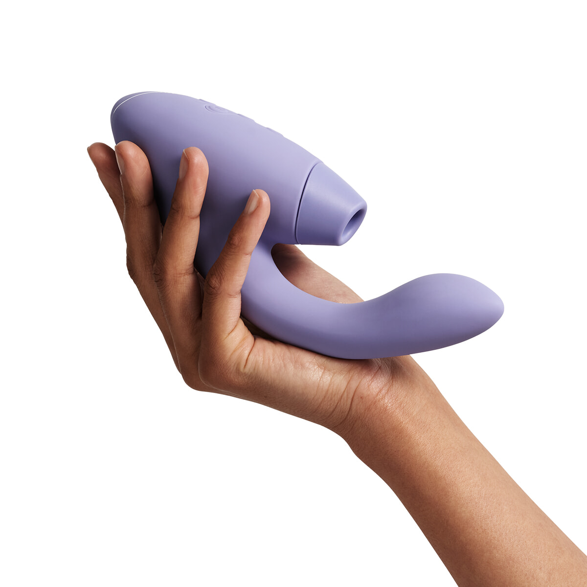 「吸うヤツ」ブームの火付け役、大ヒット商品のウーマナイザーがパワーアップ。 挿入しながらクリトリスを吸引、バイブ部分はGスポットにヒットしやすいよう、直径34ミリの先端が膨らんだフォルム。ただし形状的に、挿れてからでないと吸引できないので、前戯はバイブの振動でクリトリスなどを刺激してからバイブを挿入し、クリトリスを吸引する、という流れ。”吸いながら挿入”、は通常の行為では体験できないので、そういった意味でも未体験な快感が味わえそう。太さも結構あるので挿入バイブを使い慣れている上級者向けか。クリトリスから離すと自動でスイッチオフされる機能や、オーガズム後は電源スイッチを短めに押すと弱めの吸引に切り替わり”後戯”の余韻が味わえるなどの親切設計で、興醒めすることなくセルフプレジャーに没頭できる。吸引とバイブの振動はそれぞれ14段階の強弱が別々に選べ、さらにバイブは10種類ものパターンが。いろんな組み合わせで好みのやり方をみつけるのも楽しそう。