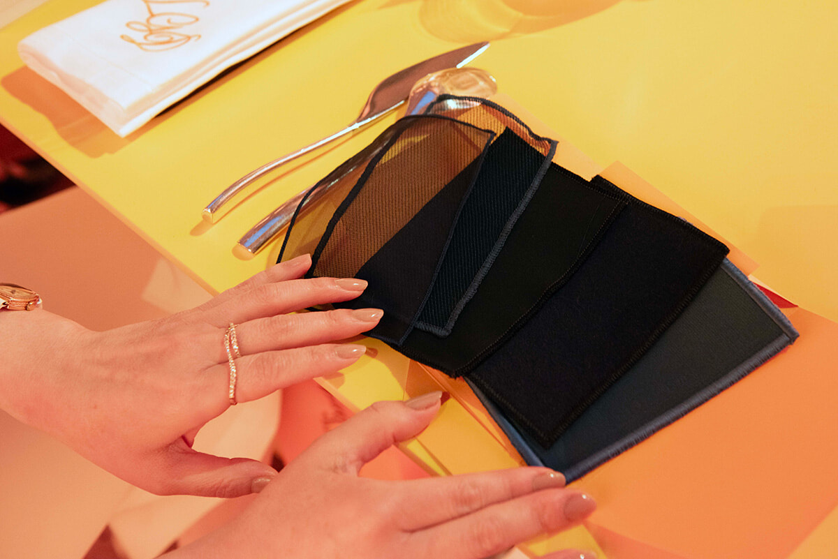 「テイスティングしながら布に触れてみてください。布に触れることは、口の中でラ・グランダムに触れることなのです」とマリオッティ。