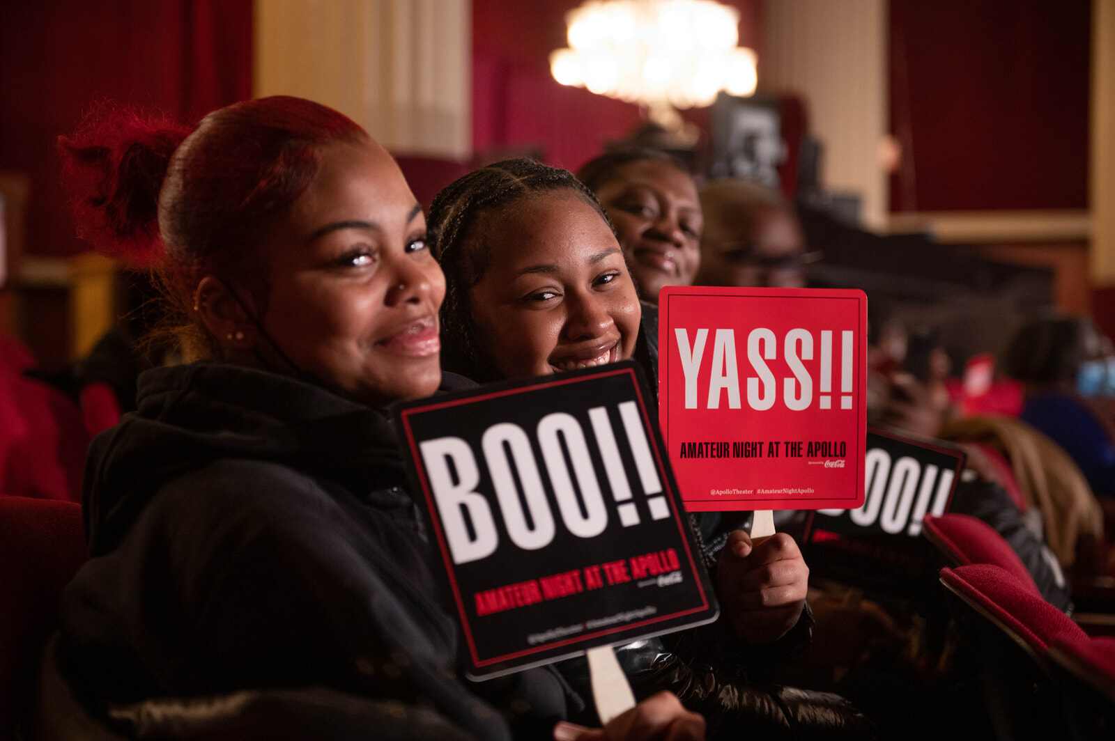 毎週水曜日に行われるアマチュアナイトは、マイケル・ジャクソン、ローリン・ヒルなど世界的スターを輩出し、90年以上の歴史を誇るニューヨークで最も長く続いてきた音楽イベントのひとつ。来場者には、入口でYASS!!(よい)とBOO!!(ダメ)の2枚のプラカードが渡され、客が主体となって演者のパフォーマンスをジャッジするという一体感が長年の人気の秘密となっている。全米から集まったアマチュア・パフォーマーたちは、年齢もジャンルもさまざまで、その多種多様な感じを楽しむのも一興。
