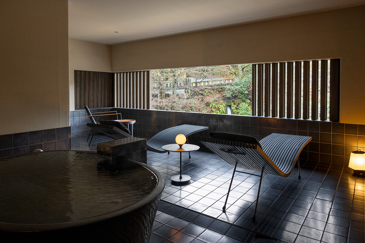 全25室 温泉付き7室、バスタブ付き18室 モダンスイート1室¥91,000~、アートスイート1室¥106,000~(ともに1室2名、2食付き)