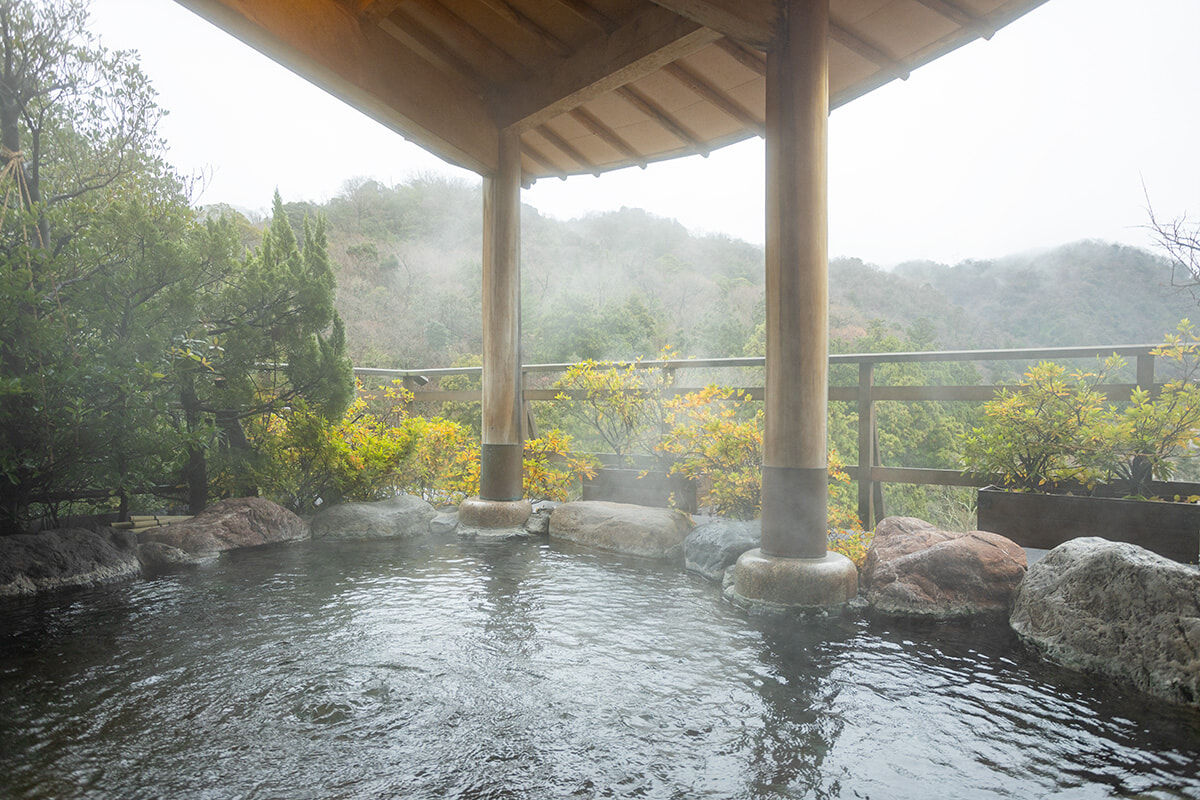 宿の最上階には露天風呂が。別のフロアに大浴場もある。