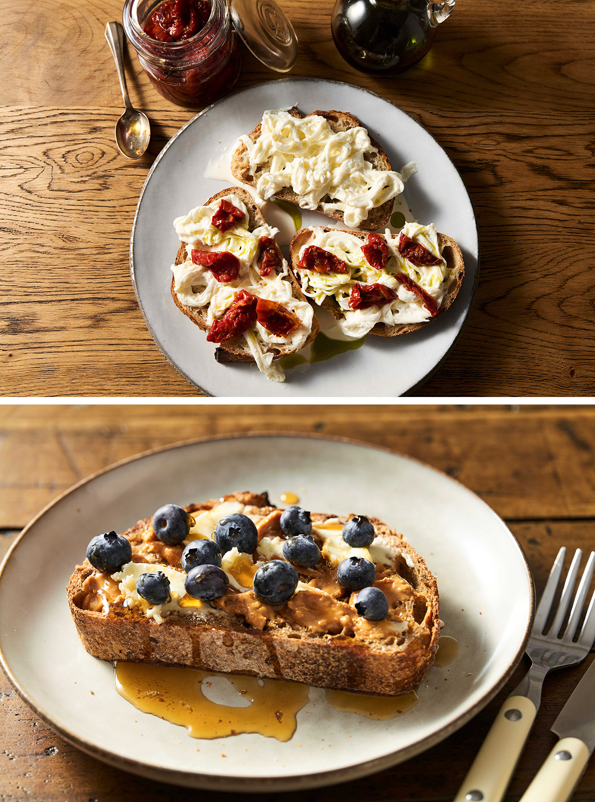 お米のような甘味を感じる「カントリーブレッド ホワイト」と、サワードゥならではの酸味が食欲をそそる「カントリーブレッド ブラウン」の2種をベースに、さまざまなアレンジ法を伝授! 合わせるデリやジャム、チーズでワインとのペアリングの幅もうんと広がるはず。