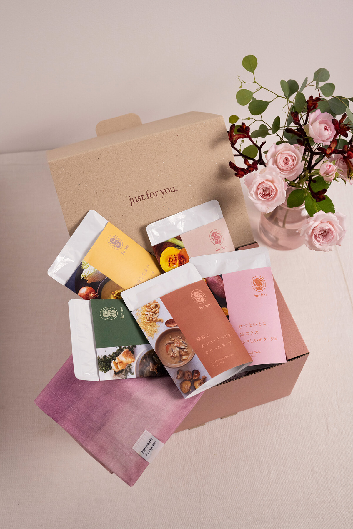 ポップアップイベントでは、この新作を含むフォー ハーのスープに、山崎美弥子とのコラボレーションで作られたランチョンマットを組み合わせたギフトセットを限定販売。忙しくても「きちんと食べる」時間を大切にできるセットは、頑張る女性にこそ贈りたいアイテムだ。自分へのごほうびとしての選択肢にもいかが?