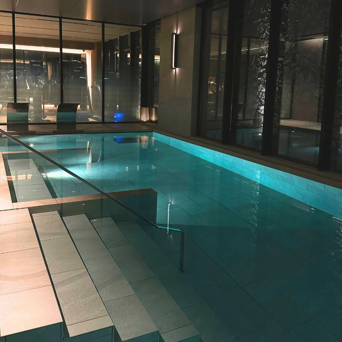 翌朝は、朝食の前に気になっていたプールへ。地下にあり、大人っぽくどこかムーディ。早朝だったこともあり、人も少なく快適! デュシタニ京都はスパなどウェルネスが充実しているのがうれしいところ。