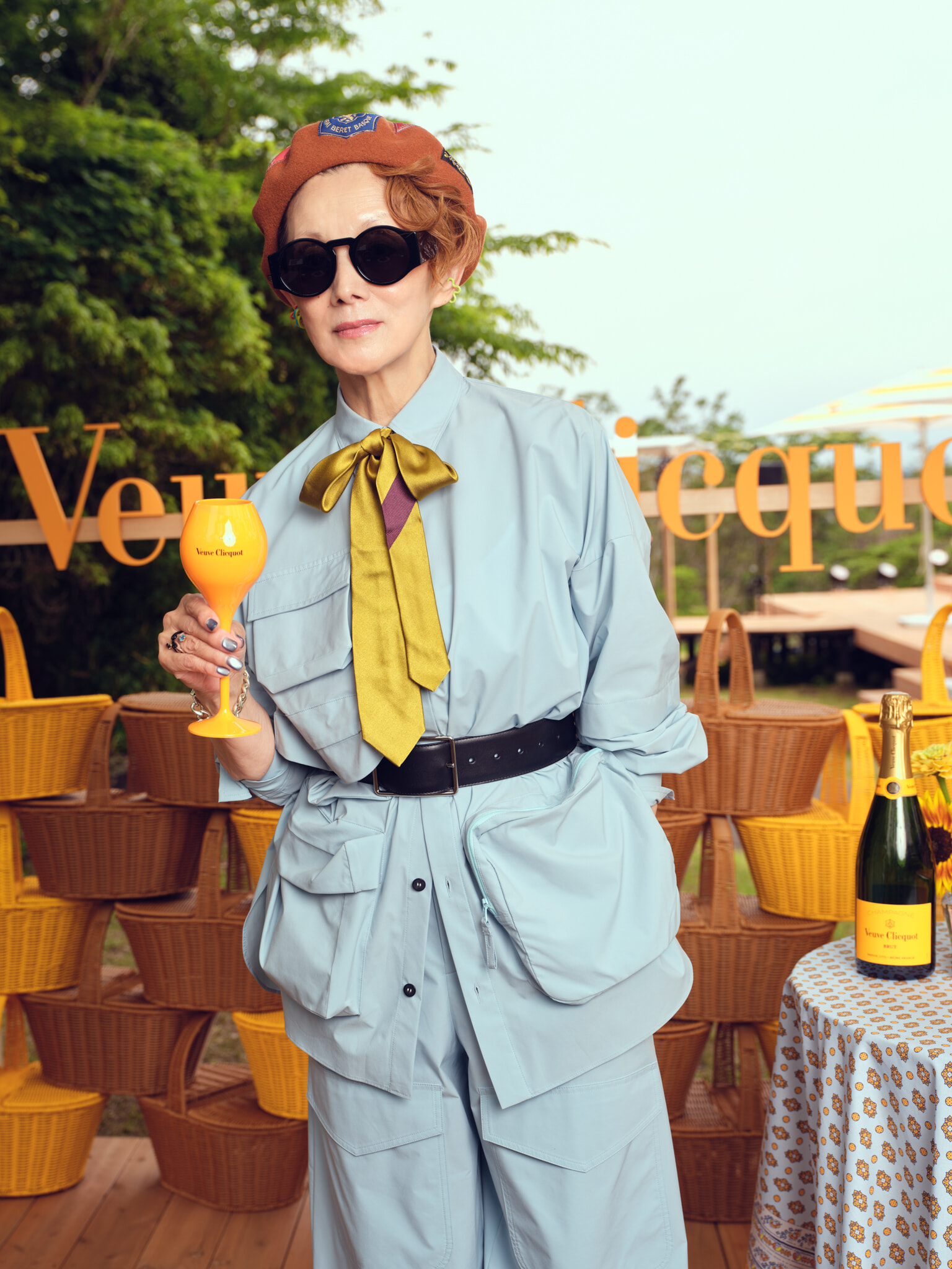 「自宅のセラーにあるシャンパーニュはほとんどがヴーヴ・クリコ」と語ってくれたほど、ヴーヴ・クリコのファンである夏木マリ。ピクニックについて「開放感があって、すべてがプラスアルファに感じられる”ちょっと非日常”、そこが楽しい」と語る。