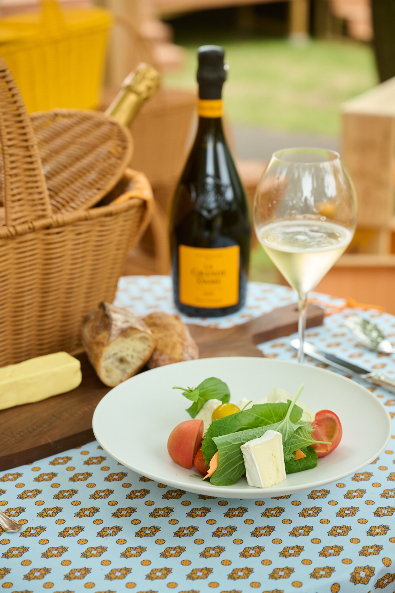 そんなメゾンが手がけた屋外でのイベントが「ヴーヴ・クリコ ピクニック」。18世紀のフランスに端を発するピクニック文化は、ヴ―ヴ・クリコが長年にわたって提唱してきた「アールドゥヴィーヴル(暮らしの美学)」を体現している。太陽の恵みを讃えつつ、シャンパーニュを自然の中で気軽に楽しんでほしい、という優雅な催しだ。