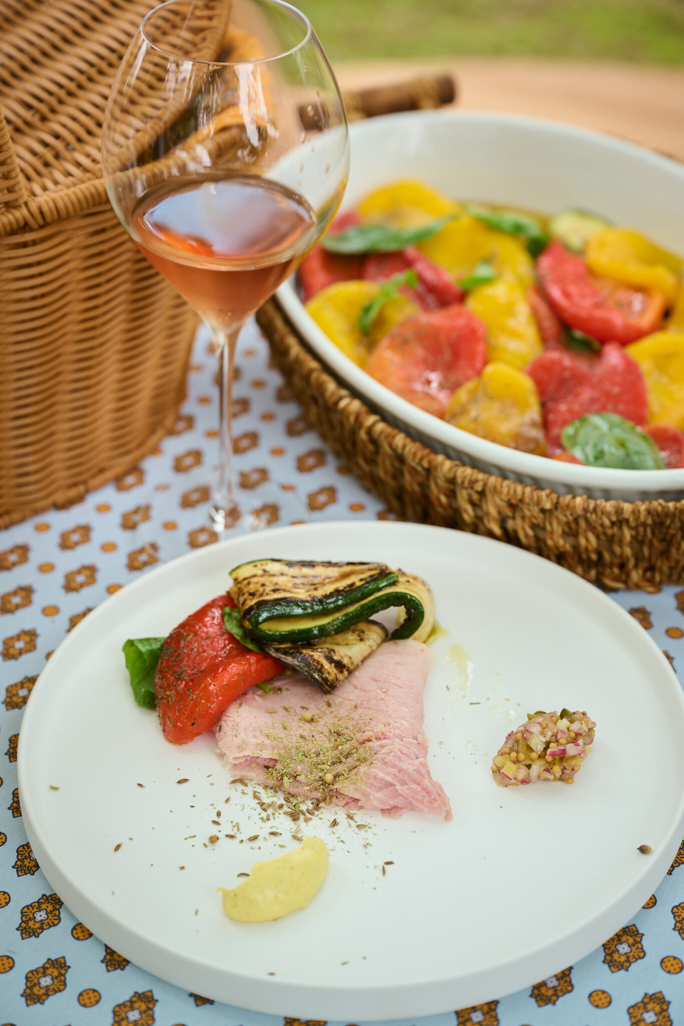 ジャンボン ロティ&夏野菜のマリネ。スパイスを足すごとに変わる表情が楽しい。