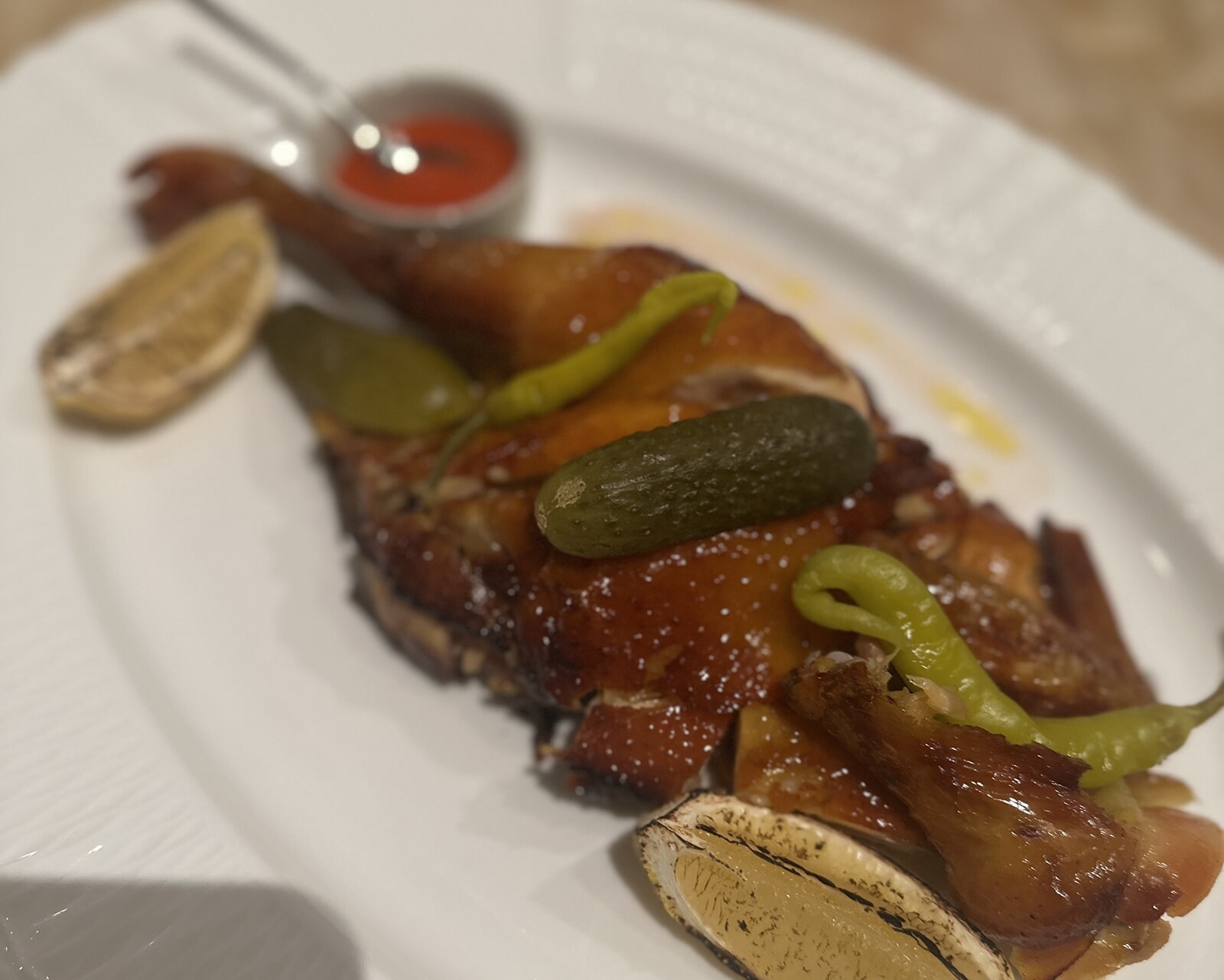 老若男女問わないゲストが夢中になるバーベキューチキンの発酵ハバネロソース添え。地元の名産である三黄鶏の美味しさが口に充満する。458香港ドル(半羽)