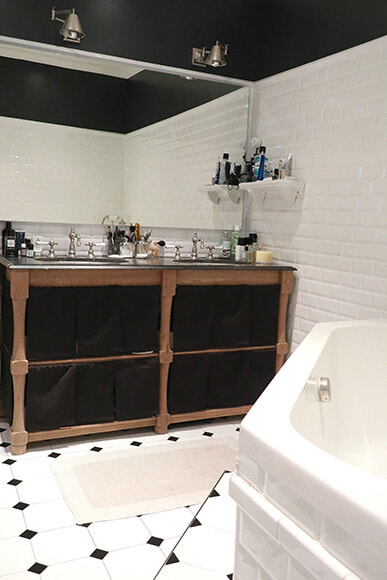パリ10区にある、125㎡のアパルトマンに家族4人で暮らすレイナ。時代の経過が感じられる古い品が好きだから、バスルームもアンティークのエッセンスを取り入れた作りにこだわった。味わいのある洗面台は憧れのFlamantのもの。定価だったら手が届かなかったものの、フリマサイトで運よく見つけることができたそう。おかげで家族にとって、理想的なバスルームの完成にこぎつけた。