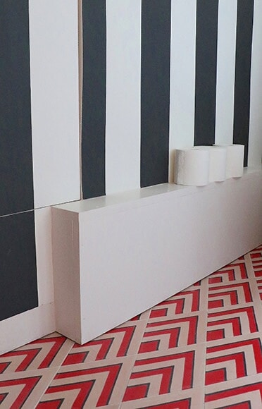 バスルーム脇にあるトイレも、グラフィックなパターンをミックス。床のタイルももちろんPophamのもの。photography: Mariko Omura