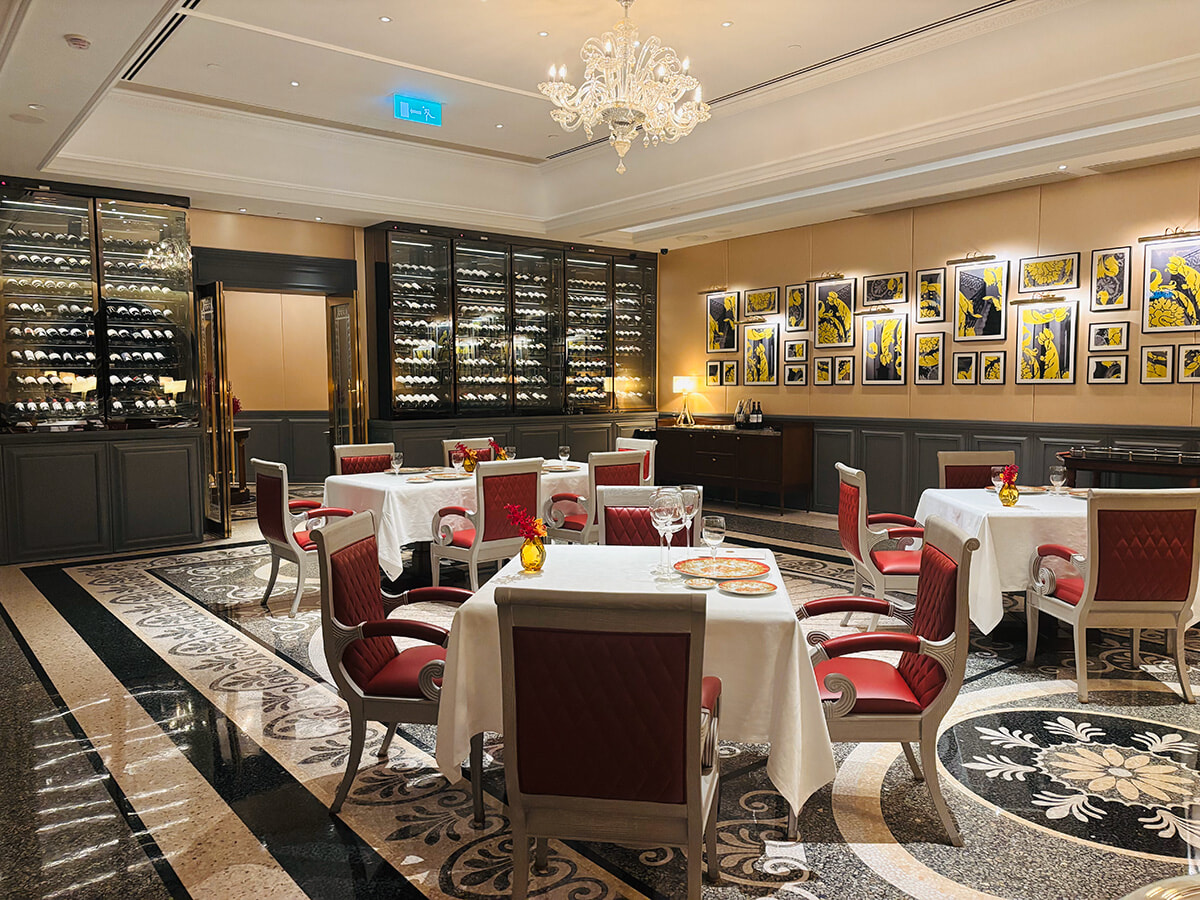 今回の旅のハイライトは、今年5月に3日間限定で開催された「シェフズ テーブル:ア シンフォニー オブ センシズ」。会場となったのは、パラッツォ・ヴェルサーチェ・マカオ内のイタリア料理店、ドン・アルフォンソ 1890。イタリア人ヘッドシェフ、フェデリコ・プッチが率いるモダンイタリアンが評判で、マカオや中国本土のほか、世界の美食家が訪れる人気店だ。