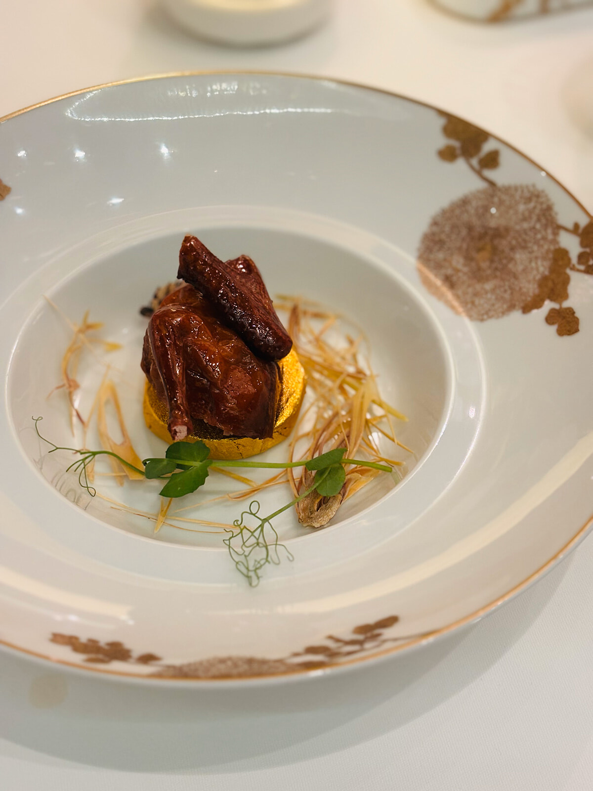 上湯の深い味が沁みるスープや、ぷりぷりとしたボタンエビの食感が身上の「牡丹虎蝦球(Peony King Tiger Prawn)」も印象的だが、出色は仔鳩のクリスピーロースト。レモングラスの香りを纏った仔鳩は、みずみずしい肉質と香ばしくパリパリした皮との対比が絶妙。プーアール茶など、厳選中国茶とあわせれば、至福の時間になること間違いなしだ。