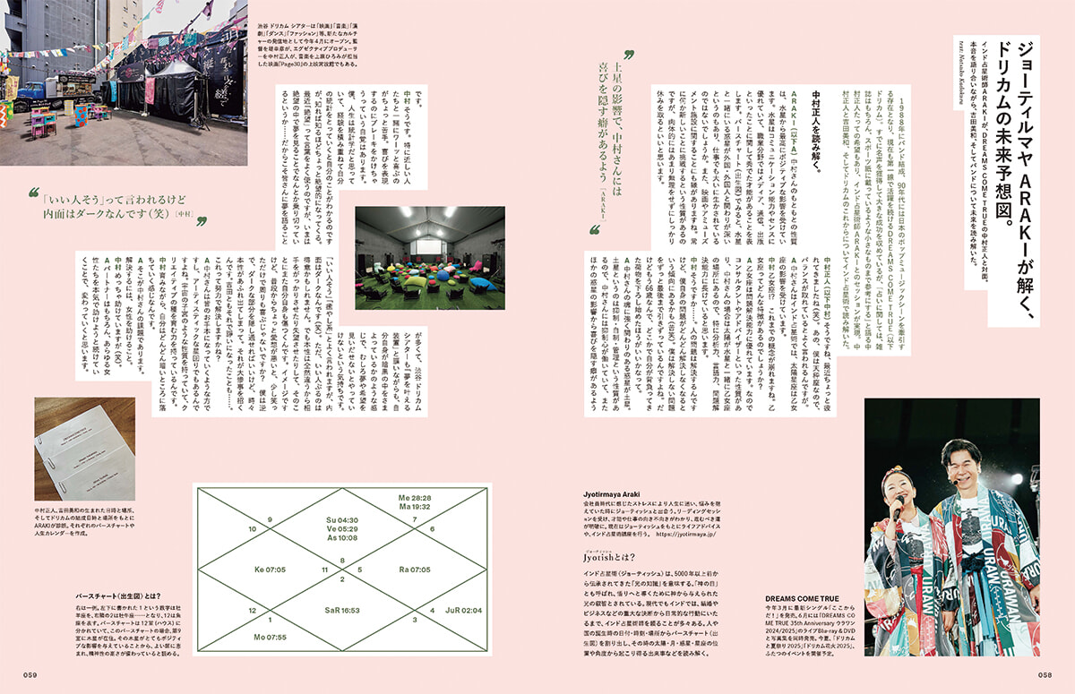 ジョーティッシュ(インド占星術)でDREAMS COME TRUEの中村正人さんを占いました。マサさんは大の占い好きだそう。我々編集部もいままで対面で会ったことがなかった広島在住のARAKI先生に、「絶対に会いにいく!」というマサさんのパワーで導かれ、広島のカフェで取材をしました。エネルギッシュなマサさんはさて、どんな相談を先生に持ちかけたのでしょう?