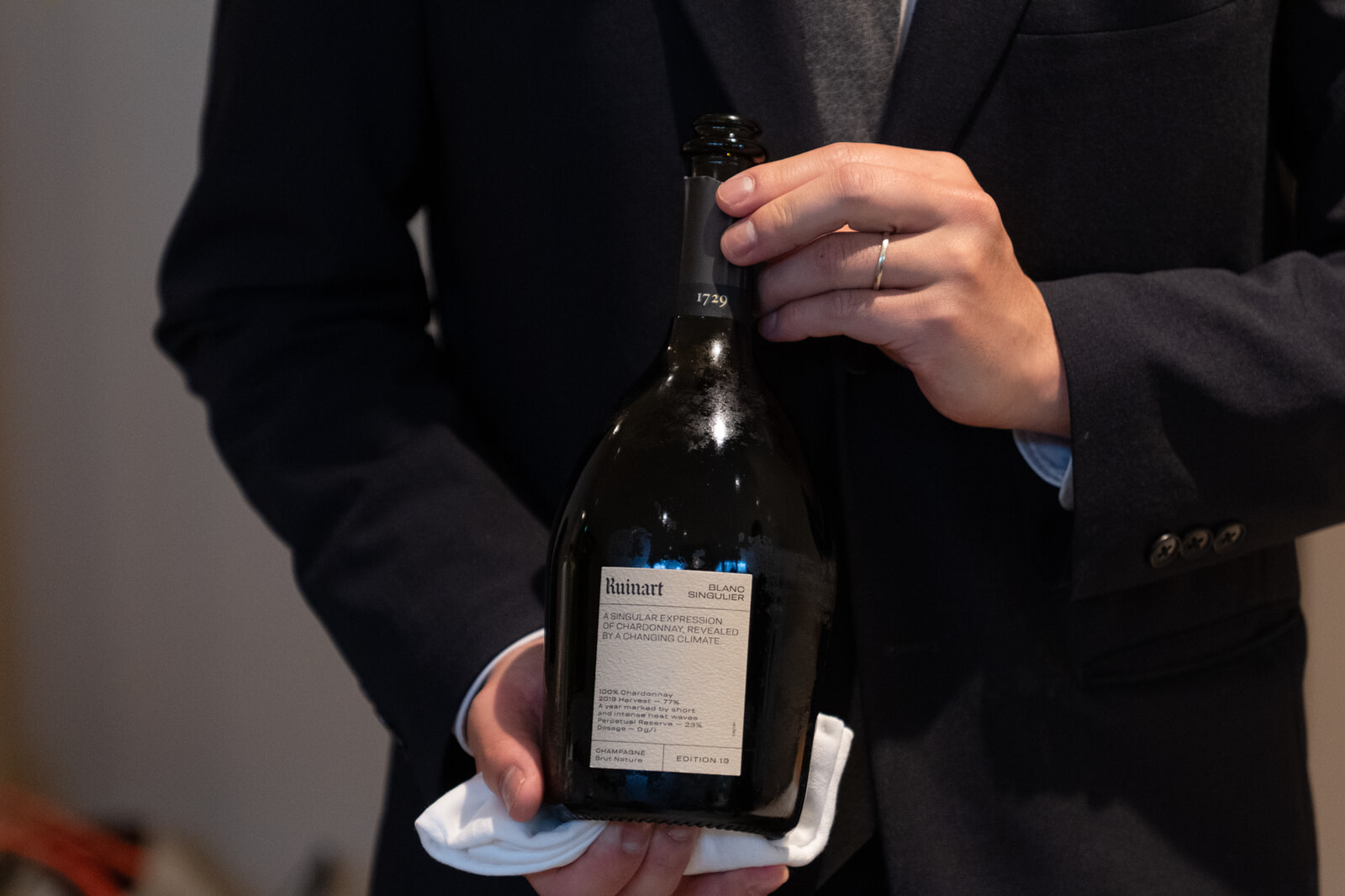 「ブラン・サンギュリエが伝えるメッセージはふたつあります。ひとつは『気候変動はもうここまで来ている』ということを明確に伝えること。そしてもうひとつは『変化の中でも、ルイナールらしさを保った美しいシャンパーニュを造ることはできる』ということです。今後も気候変動は続いていくでしょうし、われわれは身近なことからできることをしなければいけない。でも、その気候変動に向き合わなければならない、共存していかなければならないことも事実なのです」