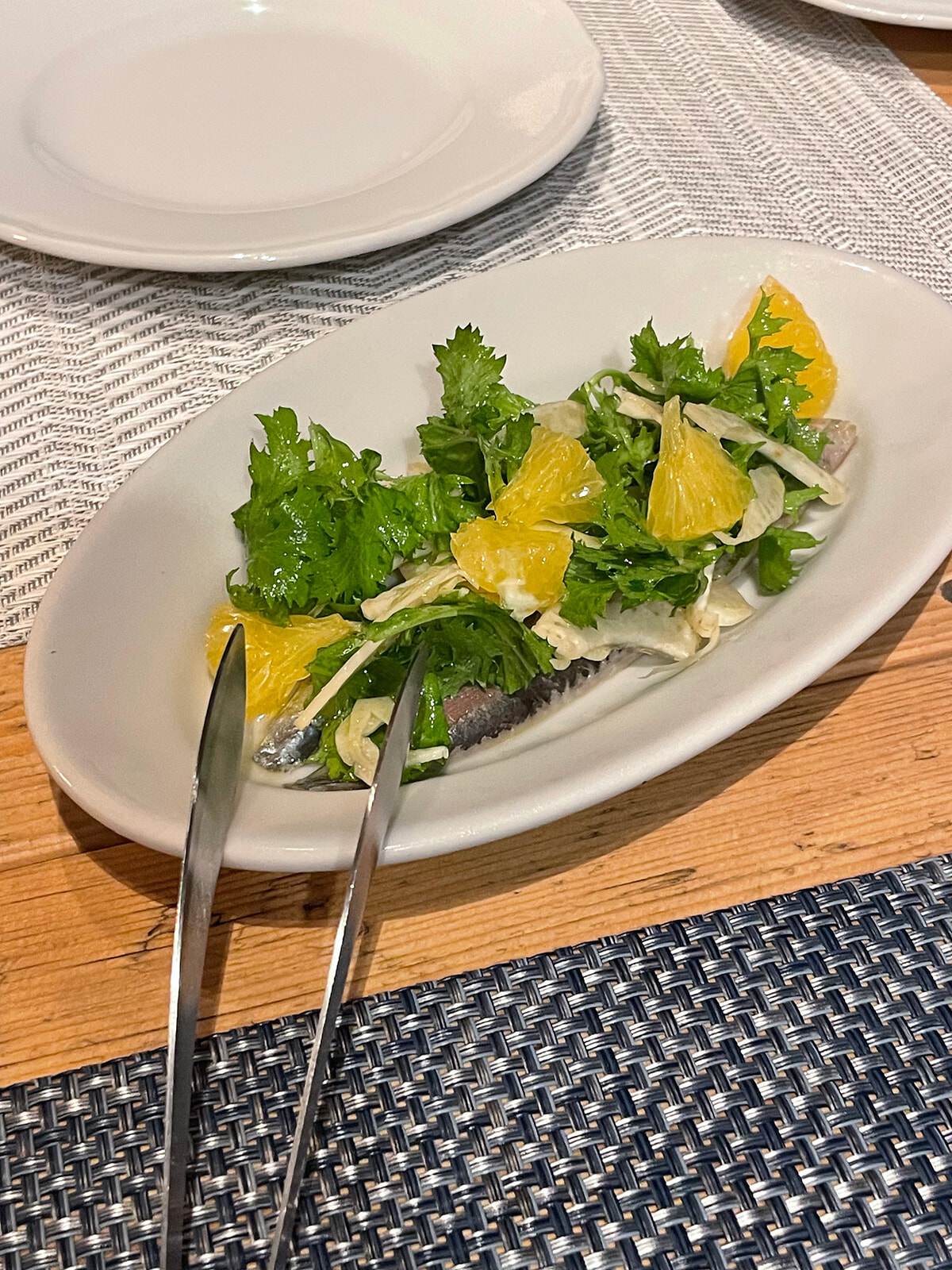 柑橘とイワシ、ウイキョウのサラダ。夏にぴったりの涼やかな味わい。