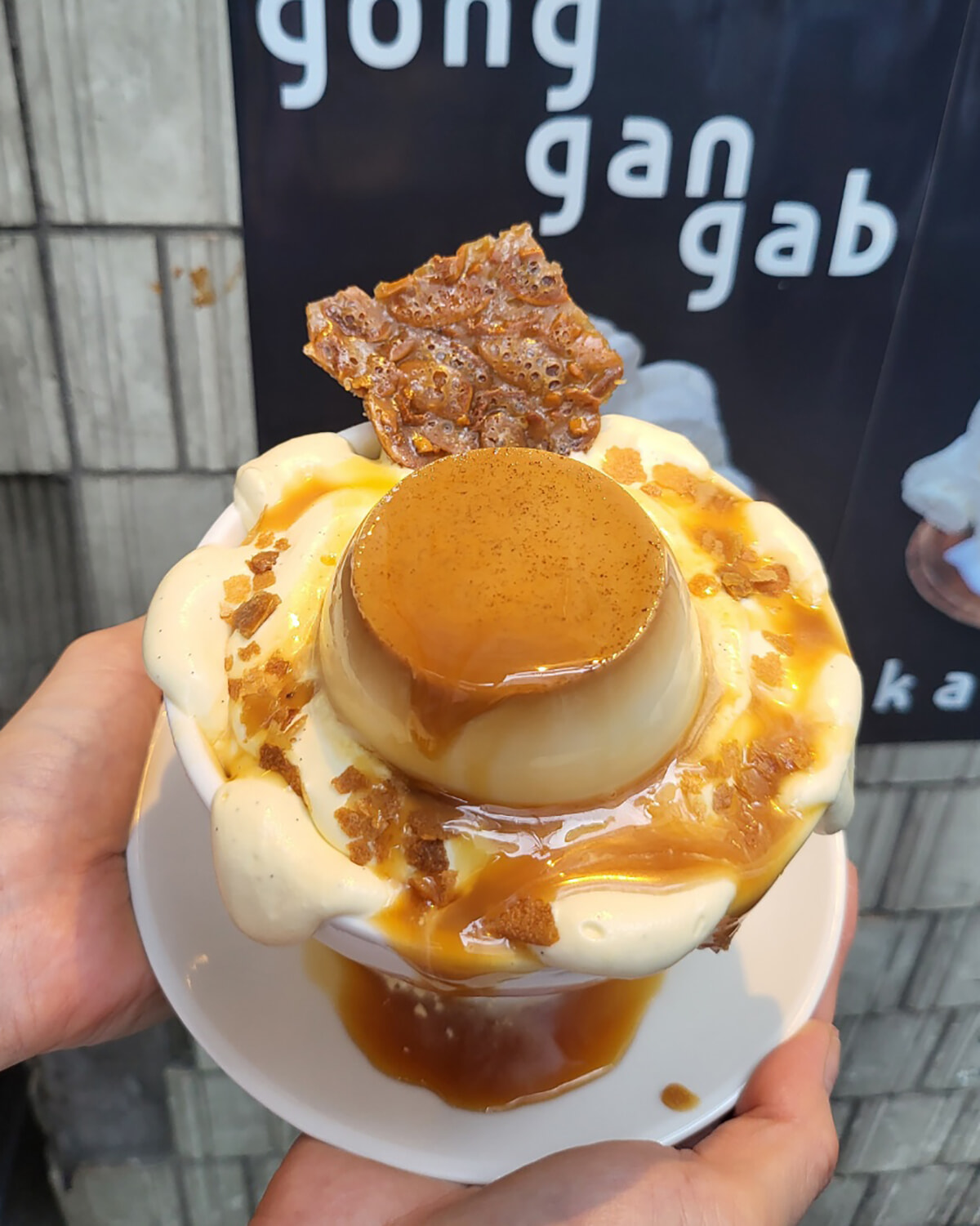 街のカフェでも個性派ピンスが続々登場中。SNS映えを狙うなら外せない、乙支路(ウルチロ)エリアでレトロな雰囲気が人気のカフェ「gong gan gap(ゴンガンガプ)」が通年で提供しているユニークなピンス。なかでも注目はバニラカスタードプリンピンス。濃厚なバニラプリンを丸ごと使用し、カスタードクリームと香ばしいヌガティンをトッピング。数量限定で売り切れることがあるので要注意。