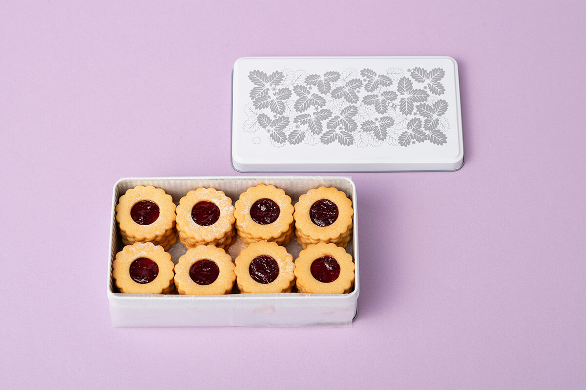 農家の方々とやりとりしたり、自社でいちご大福を製造する中、規格外のいちごを活用できるよう、いちごを使った最高級のお菓子を作ろうと、このいちごジャムサンドクッキーが誕生したという。すべて手作りで無添加無着色。みずみずしくフレッシュないちごジャムは、口の中にじんわりと幸せな余韻を残す。さらには缶の中に整然とクッキーがおさめられた姿もまた美しく、ふたを開けたときの艶やかなジャムの赤い色味を、甘やかな味とともにときどき思い出す。