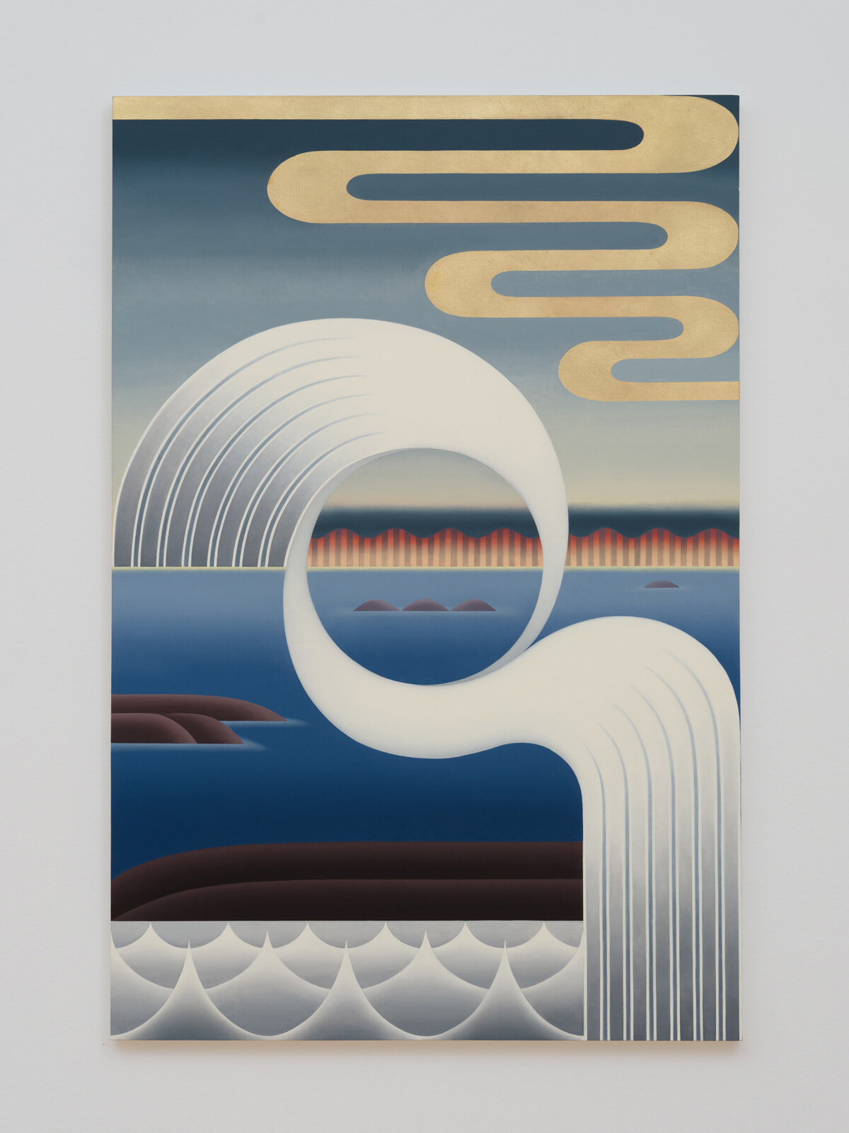 Takako Yamaguchi, Guide, 2024, oil and metal leaf on canvas, 42×50 in. (106.7×127cm). Courtesy of the artist; Ortuzar,New York; and as-is.la, Los Angeles. photography: Gene Ogami