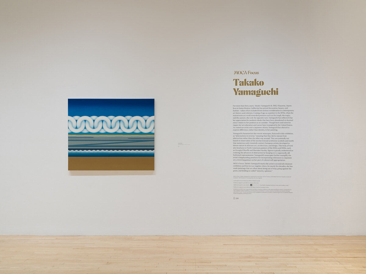 6月末にオープンした最新展示『MOCA Focus: Takako Yamaguchi』では、ロサンゼルスやサンタバーバラを拠点に芸術活動を続けてきた日本人アーティスト山口貴子氏が抜擢され、海の景色を描く作品10点が閲覧できる。