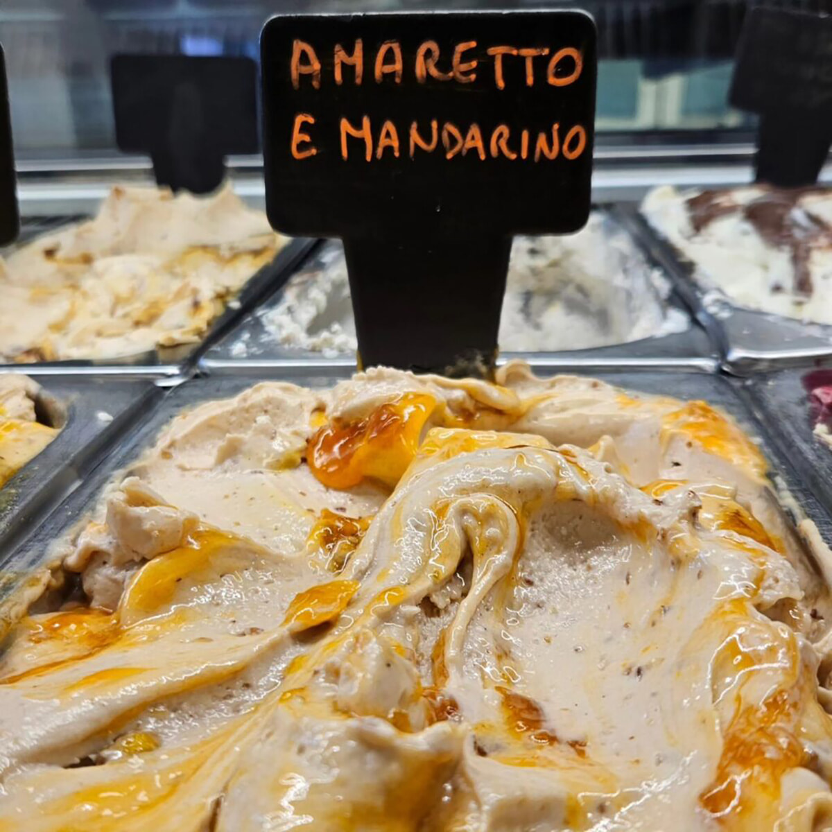 杏仁のリキュール「アマレット」とみかんを合わせたジェラート。