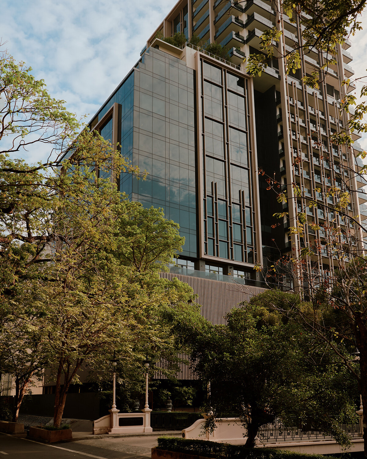 ナイラートパークの緑に包まれ、ひときわ高級感のあるスタイリッシュな建物が地上36階建ての「アマン ナイラート パーク バンコク」。