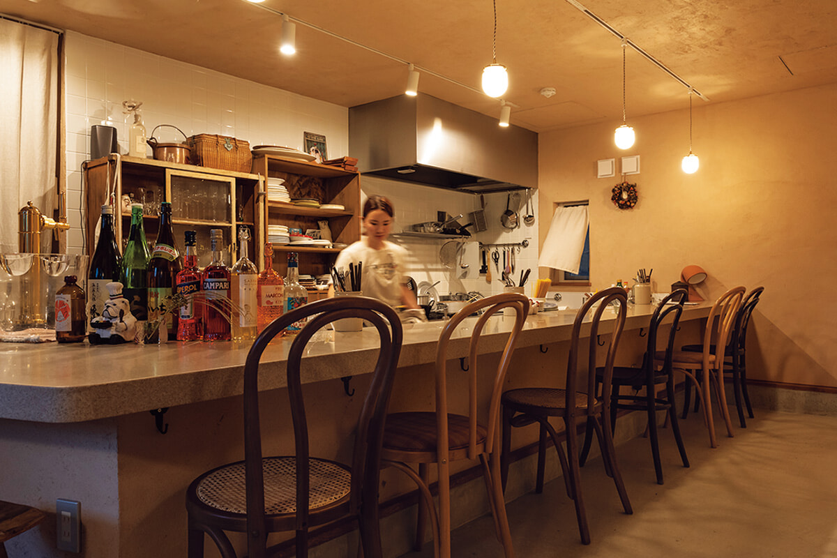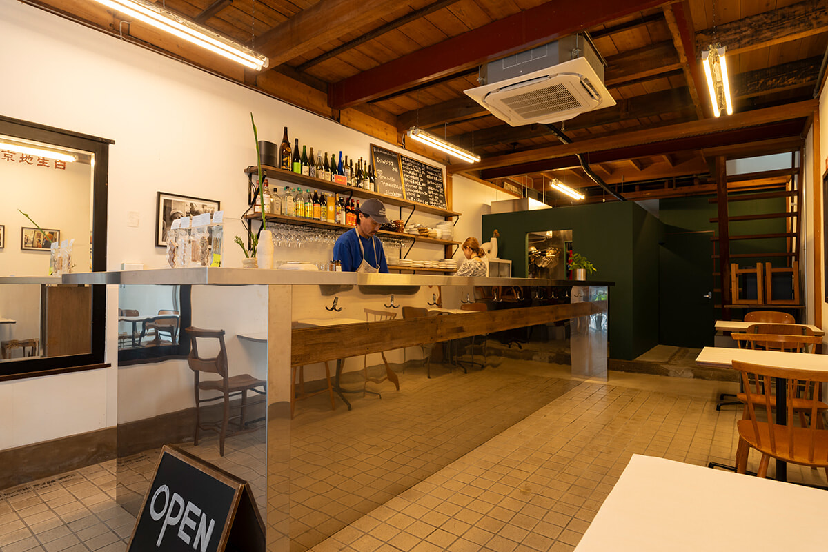 大通りから一本入った住宅地の一軒家。まるで自宅に招かれたような空間で、早朝からナチュラルワインを嗜める。大阪のリストランテから地元京都のワインビストロを経て独立した店主。大原から届けられるみずみずしい野菜をちりばめた限定プレートと、軽やかな味を中心にセレクトするワインとのペアリングも朝時間にぴったりだ。イタリアの総菜からパスタ、スイーツまで通常メニューも愉しめる。