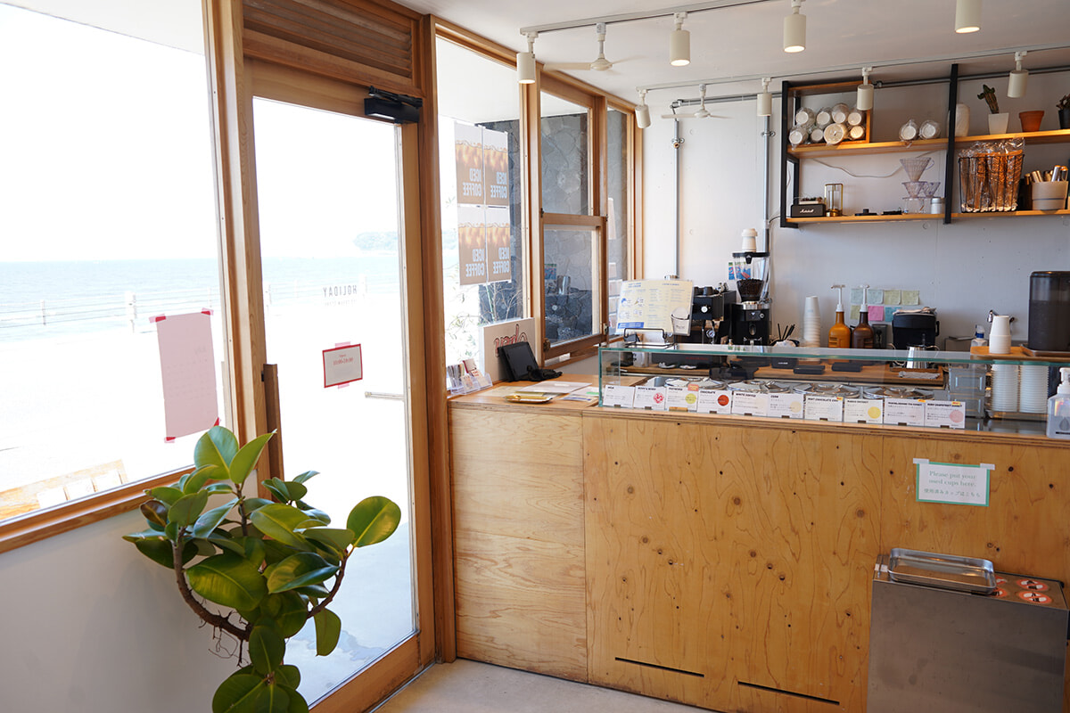 目の前には七里ヶ浜の海が広がり、店内からも海を感じられる気持ちの良いお店。