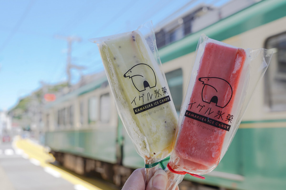 江ノ島から腰越の間は、路面電車のように道路上を走る江ノ電。風情あるその区間にお店を構えるのが、小さなアイス屋さん「イグル氷菓」。
