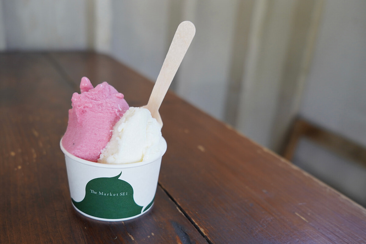好みの2種類を選ぶダブルの注文が基本。そこへ、一口おまけで別のフレーバーをトッピングしてくれるのもうれしい。
