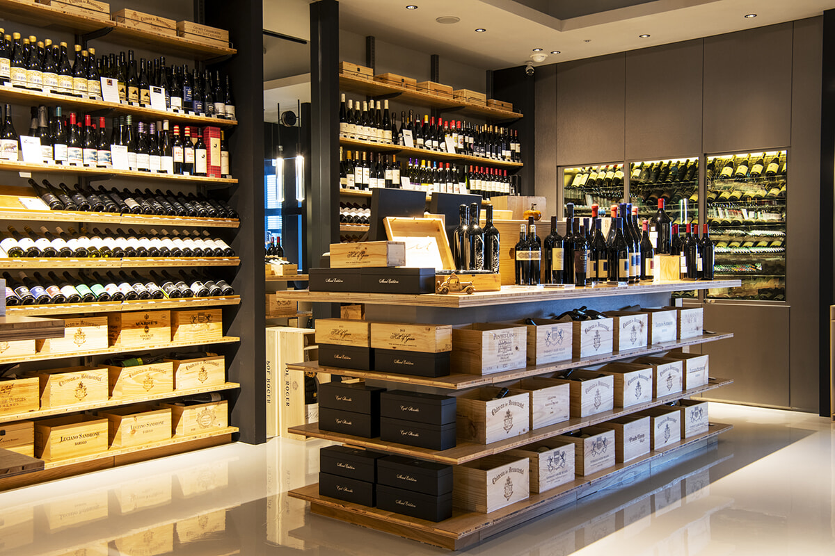 こちらがショップエリア。1200種以上のワインが並ぶ。