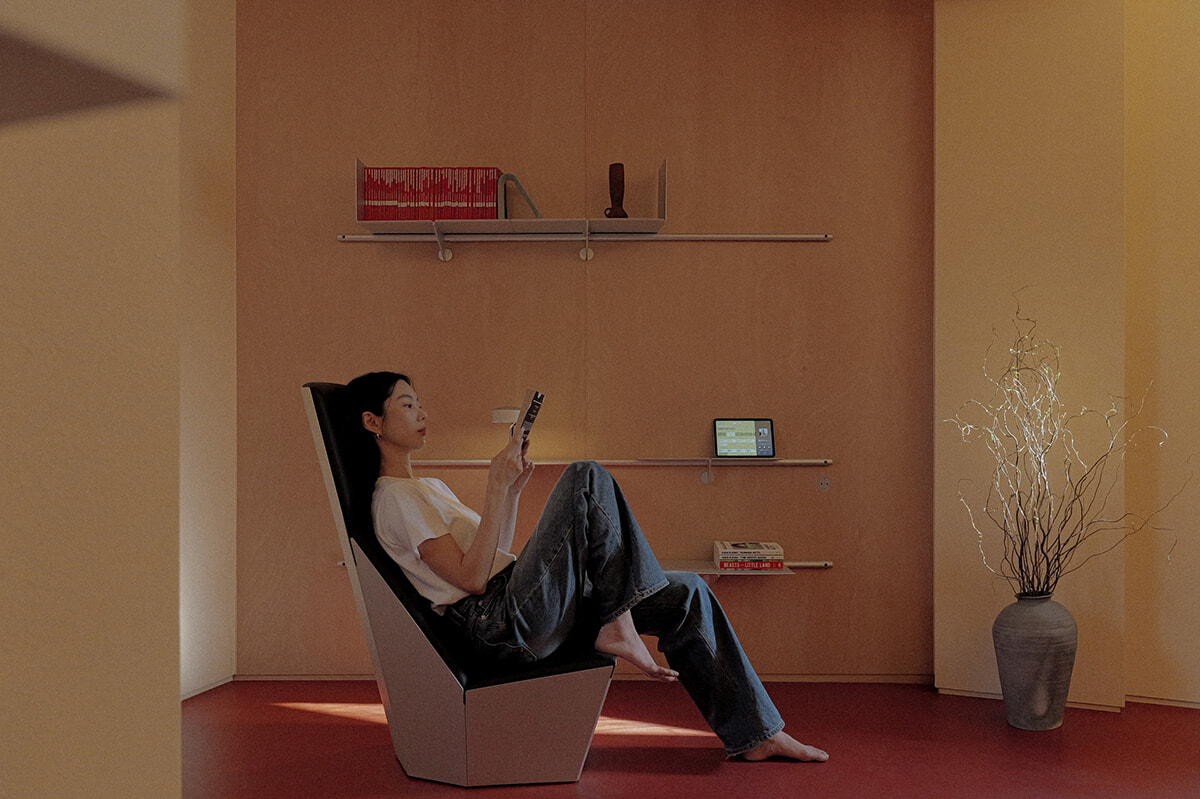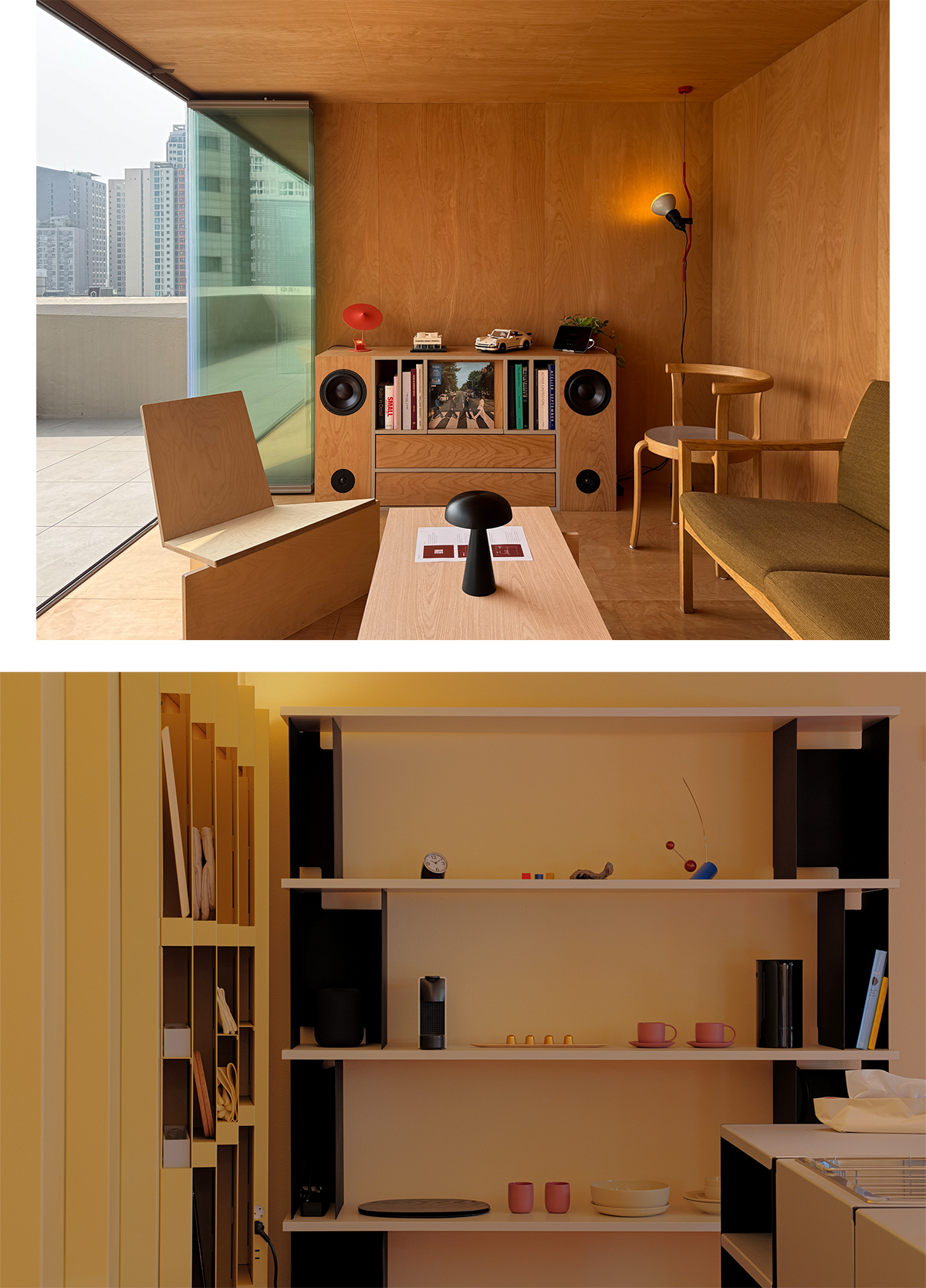 家具はすべてソウルのデザインスタジオ、ユースフルワークショップによるオリジナル製品で、彫刻的なラウンジチェアや可動式のキッチンユニットなど、機能的かつ美しいデザインが空間を彩る。また、韓国のクラフト作家たちが手掛けたオブジェが点在し、滞在者の感性を刺激し、暮らしの豊かさを体感させてくれる。