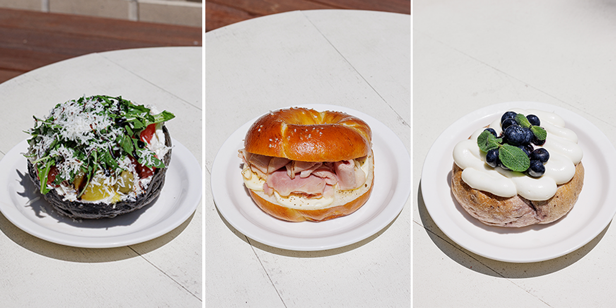 素材の風味を生かした「ソルトバターベーグル」や「ブルーベリーベーグル」、ボリューム感のある「カプレーゼ」や「ハニージャンボンブール」などのサンドイッチ系まで、多彩なラインアップが揃う。ベーグルだけで30種類以上あり、軽食からしっかりとした食事まで幅広く対応。ベーグル3,800ウォン〜、ドリンク5,000ウォン〜、スープ9,500ウォン。 photography: Ugly Baker’s Bagle