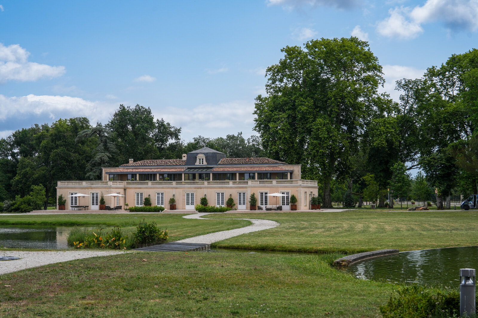 ウェディングの会場にもなるシャトー・ドーザックの城館。ほかにもラグジュアリーホテルや高級B&Bなど、ワインツーリズムの施設が充実している。