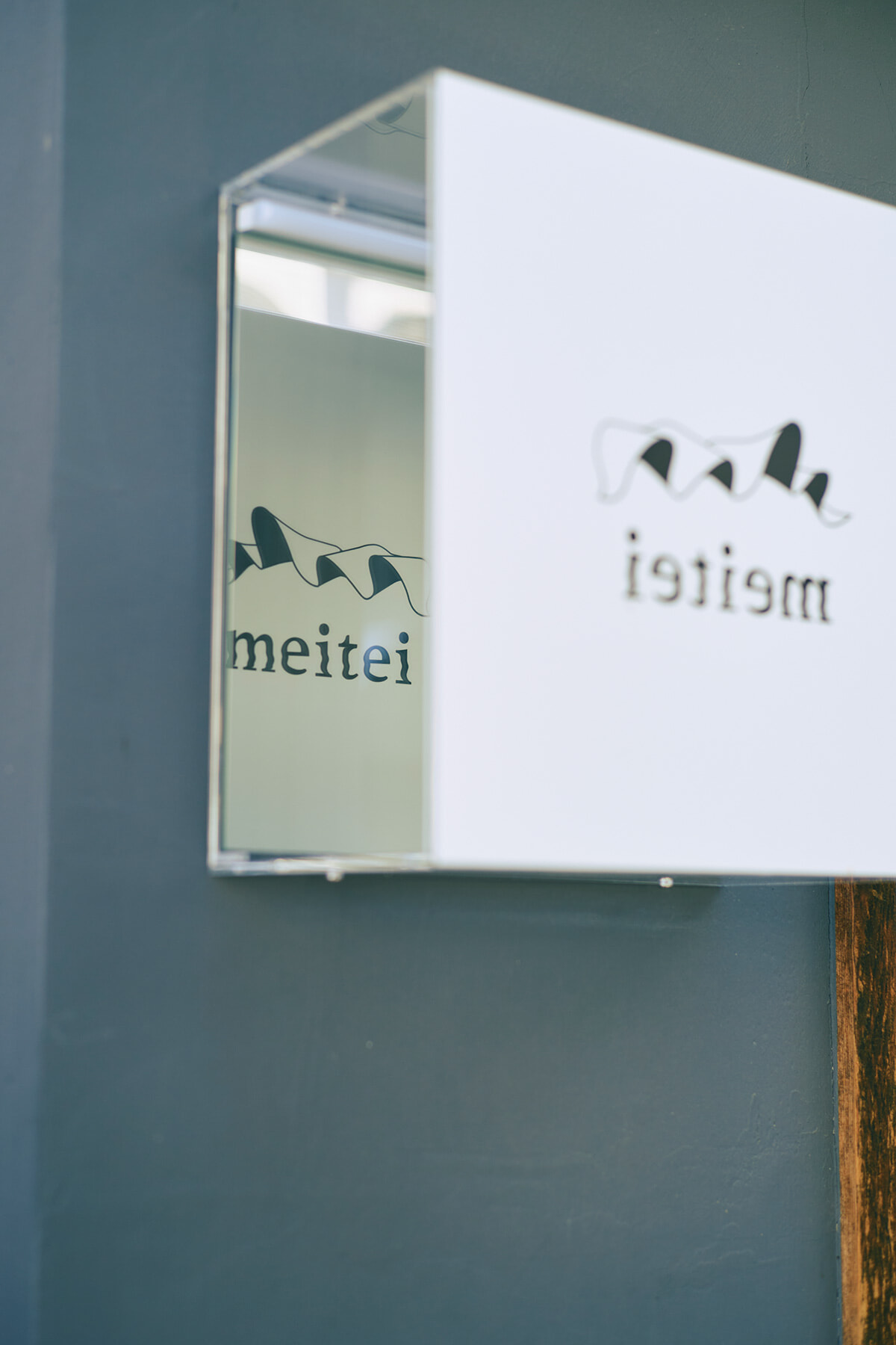 一棟貸しのゲストハウスを改造した空間は、1階がスタンディングバーで2階がテーブル席。看板の裏側には鏡が配され、そこに映る反転したロゴで語源を明かす心憎い仕掛けが。