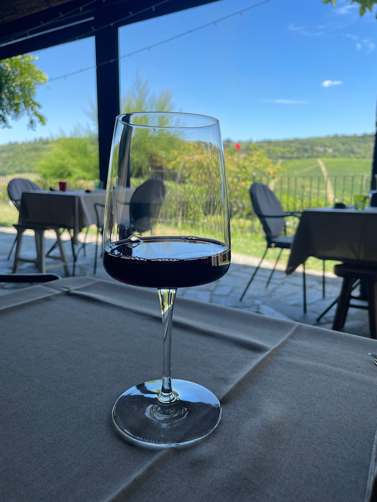 実は、この昼食には真の主役がいる。懐かしい料理たちをひとつにまとめるメインは「ルケ」だ。ウェイターが僕たちのグラスに注いでくれたルケは、ルビーのような深い色合いで、紫がかった反射のあるワイン。これは日常のワインではないと、僕は知っていた。この土地の本質そのものを凝縮したワインだ。