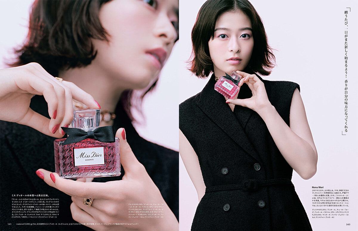 美容テーマでは、ミスディオール エッセンスの表現者として、森七菜さん登場! フィガロジャポンでの撮影は確か初めてのはず。担当の美容エディターが間近で見て、びっくりするほど愛らしかった!と興奮していました。
