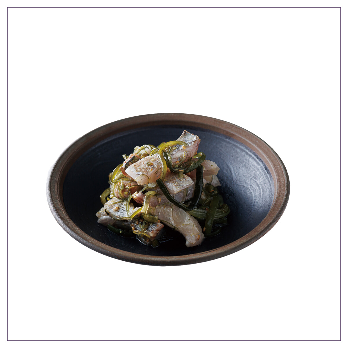 「タチウオ 茎ワカメ ワサビ和え」¥1,100。皮目を軽く炙ったタチウオの香ばしさを煎酒が引き締める。剣山引きの茎ワカメの食感もシャキシャキと軽快。