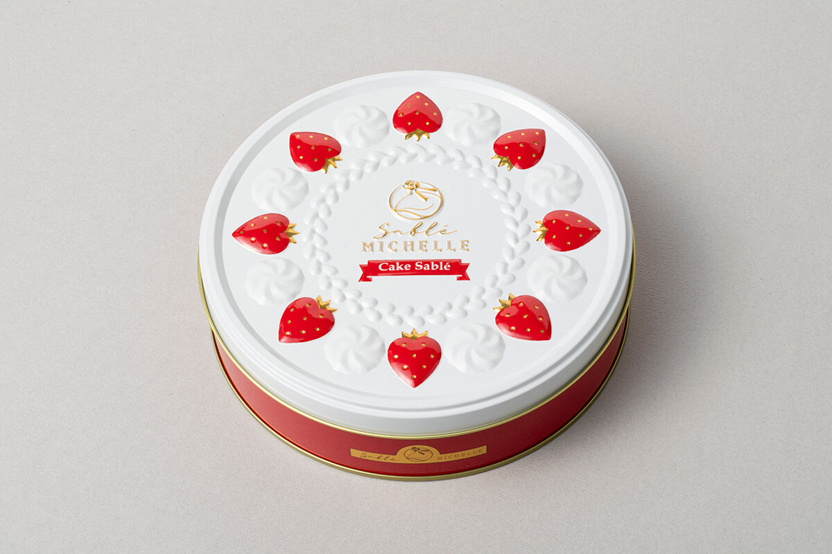 いちごとクリームのエンボス加工を施した缶も、ホールケーキそっくりの愛らしいデザイン。蓋を開けると、わっと歓声が湧き起こる華やかなお菓子だ。