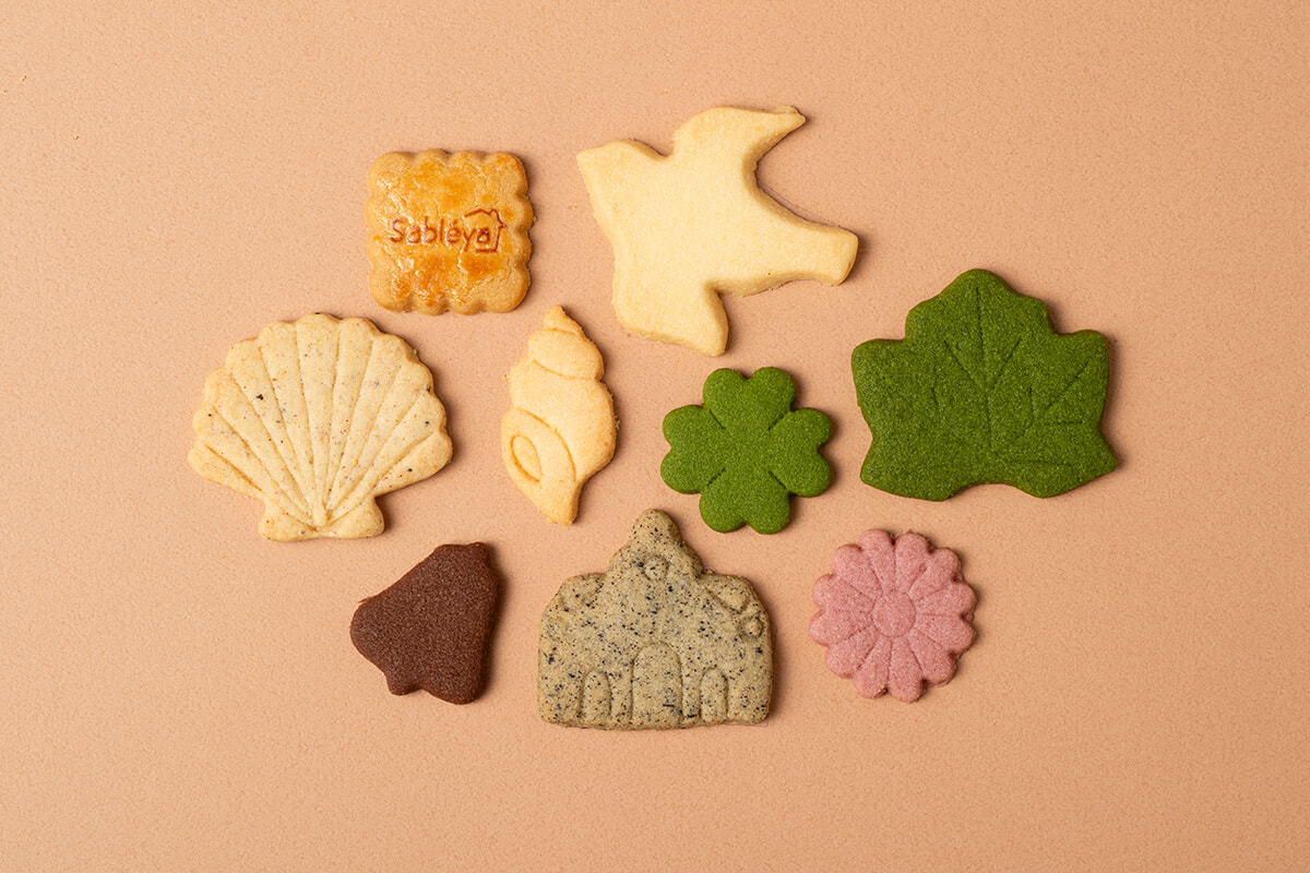 とり、花、四つ葉のクローバー、貝、ベル、教会など、幸せな光景が浮かぶモチーフが、サブレとしてかたどられているのも、アトリエサブレヤらしさである。プレーン、焦がしバター、抹茶、いちご、チーズ、ペッパーソルト、ココア、紅茶と、形ごとに異なる味わいだ。
