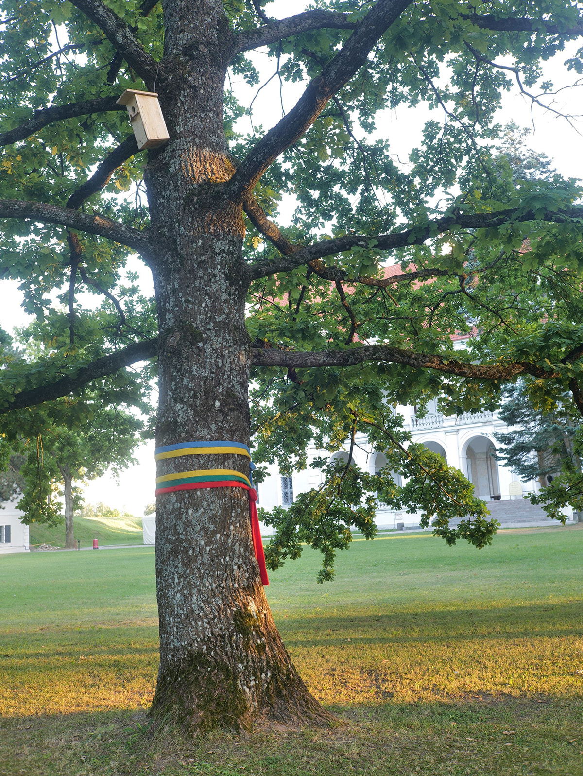 ビルジャイ城の周りを散歩していたら見つけた木。リトアニアとウクライナの国旗のリボン。