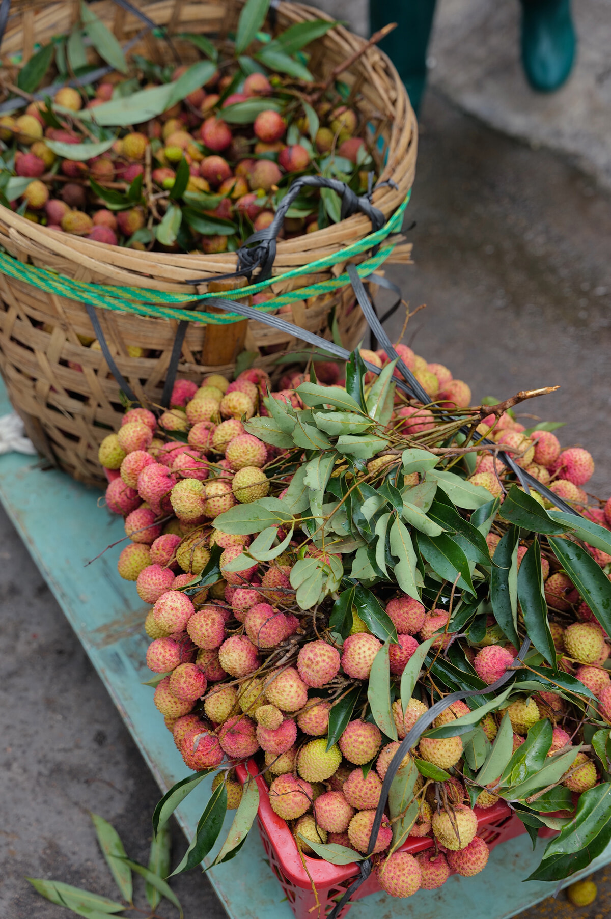 おりしもライチのハイシーズン。市場では枝付きのまま計り売りされる。鮮度抜群のライチはこのうえなくジューシー。